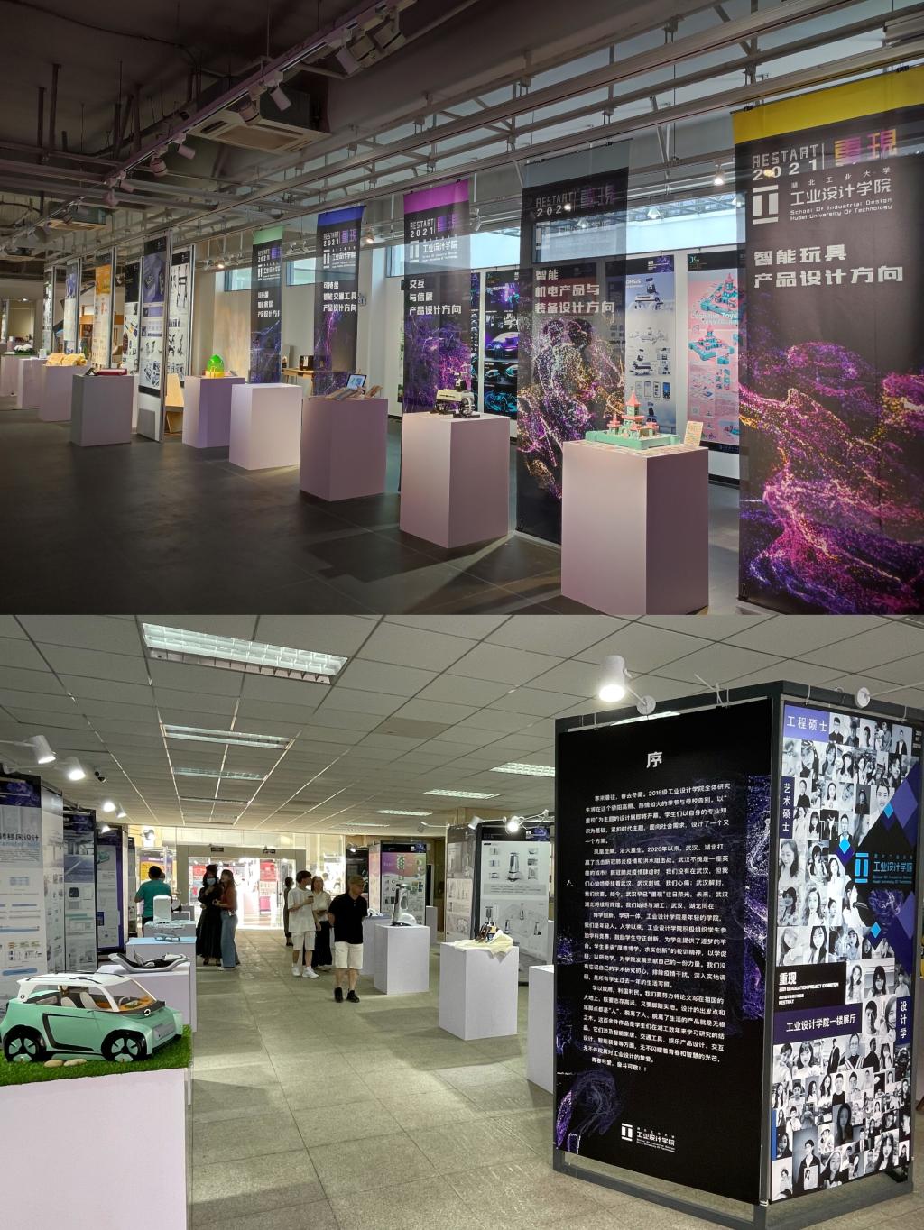 本次展览紧扣时代主题,面向社会需求,以“重现”为主题,分为本科生和研究生两大展区,参展作品涉及可持续智能家居设计、可持续智能交通工具设计、信息产品与交互设计、智能玩具设计、智能机电产品与装备设计等五个专业方向共170件本科生作品及105件研究生作品。这些作品融合了智能化设计与服务设计的新理念,表达了学院设计学科发展深厚渊源的同时也展现了学院朝气蓬勃发展的新态势,既重现了湖工设计的传统力量,也再现了学院的创新理念,展示了学院学子们方兴未艾的风采。