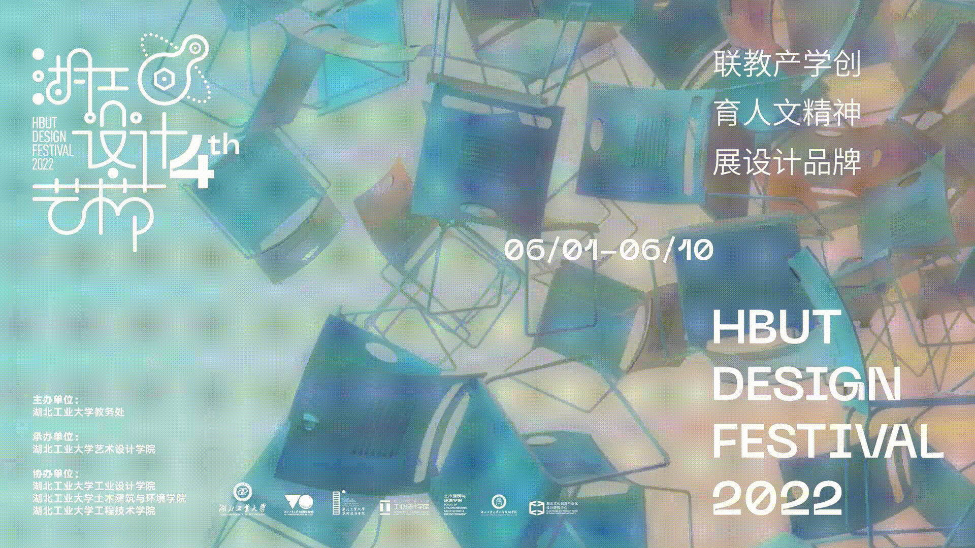 团队从毕设展的一把椅子开始,汇集聚合成无数把椅子,形成了本届艺术节的主视觉,并为主视觉做了动态设计:无数把椅子,腾飞而起。在视觉设计团队看来,每一名设计专业的毕业生,从“新”生到新“生”,四年的时光里,迎着设计之光,渴求、热情、迷惘、停歇、焦虑、寻觅、凝结,最终走向人生新的起点,椅子见证你所有的隐秘的悲喜。这时,它不是一把椅子,而是一个观念,不同的观念带来不同的生活。