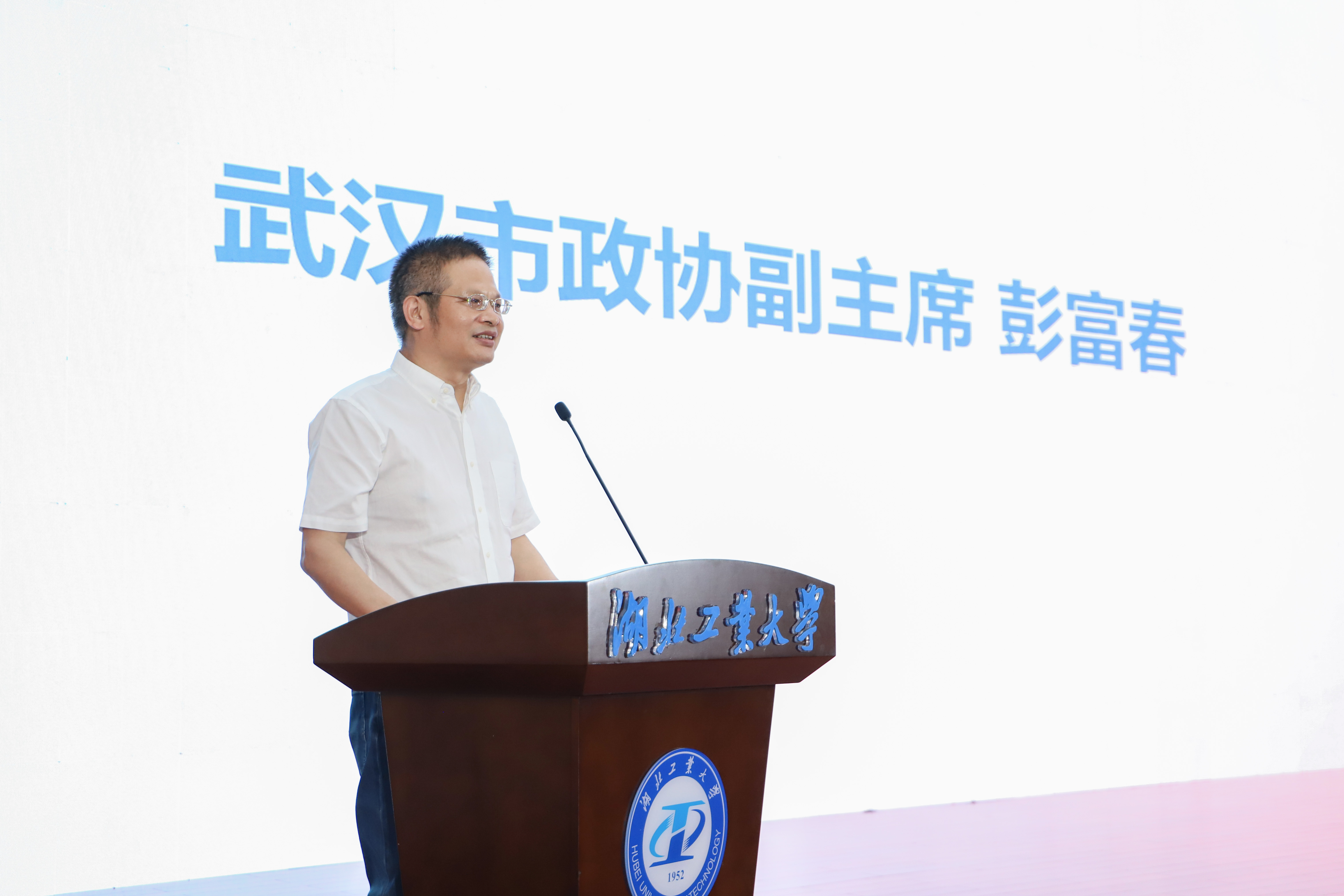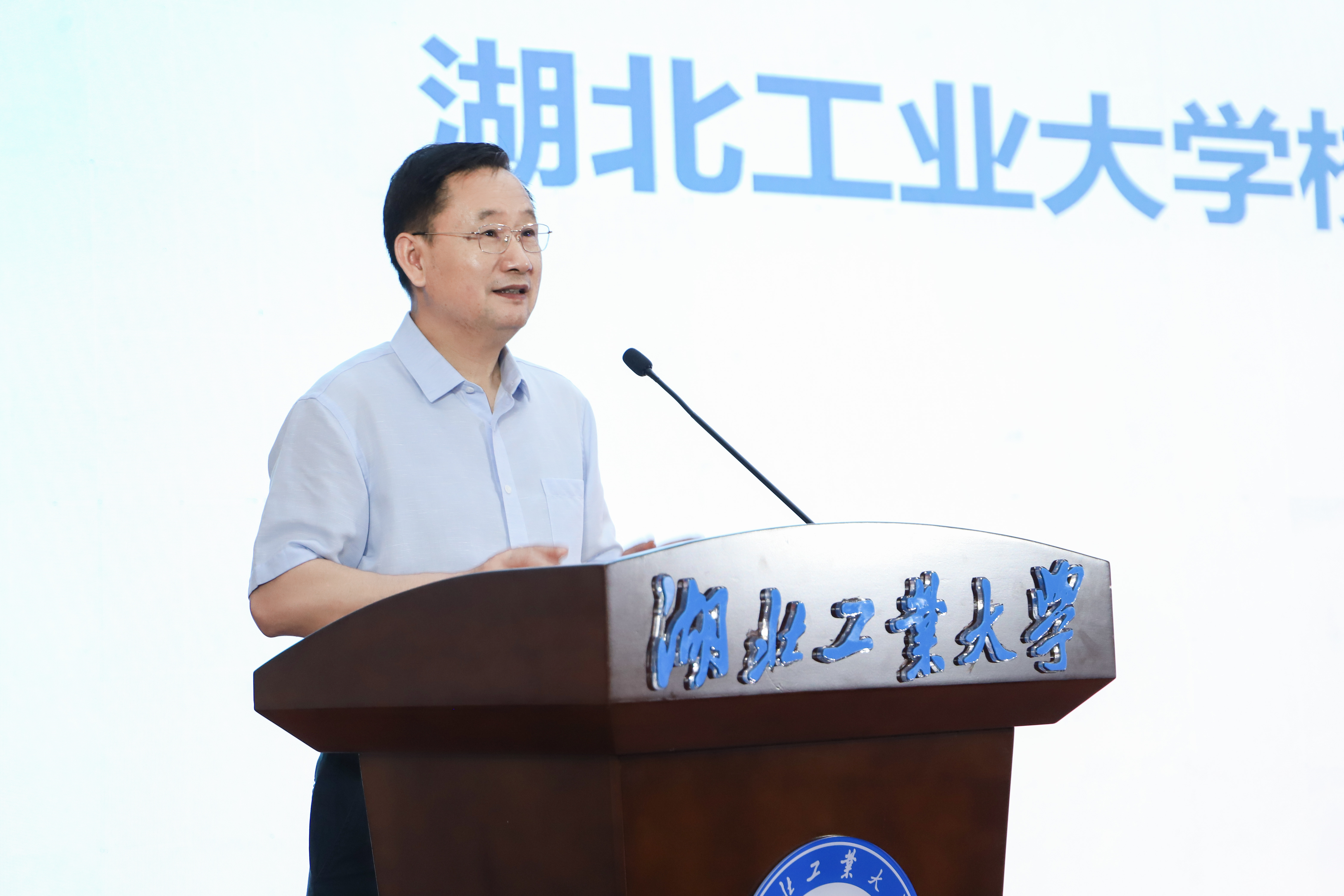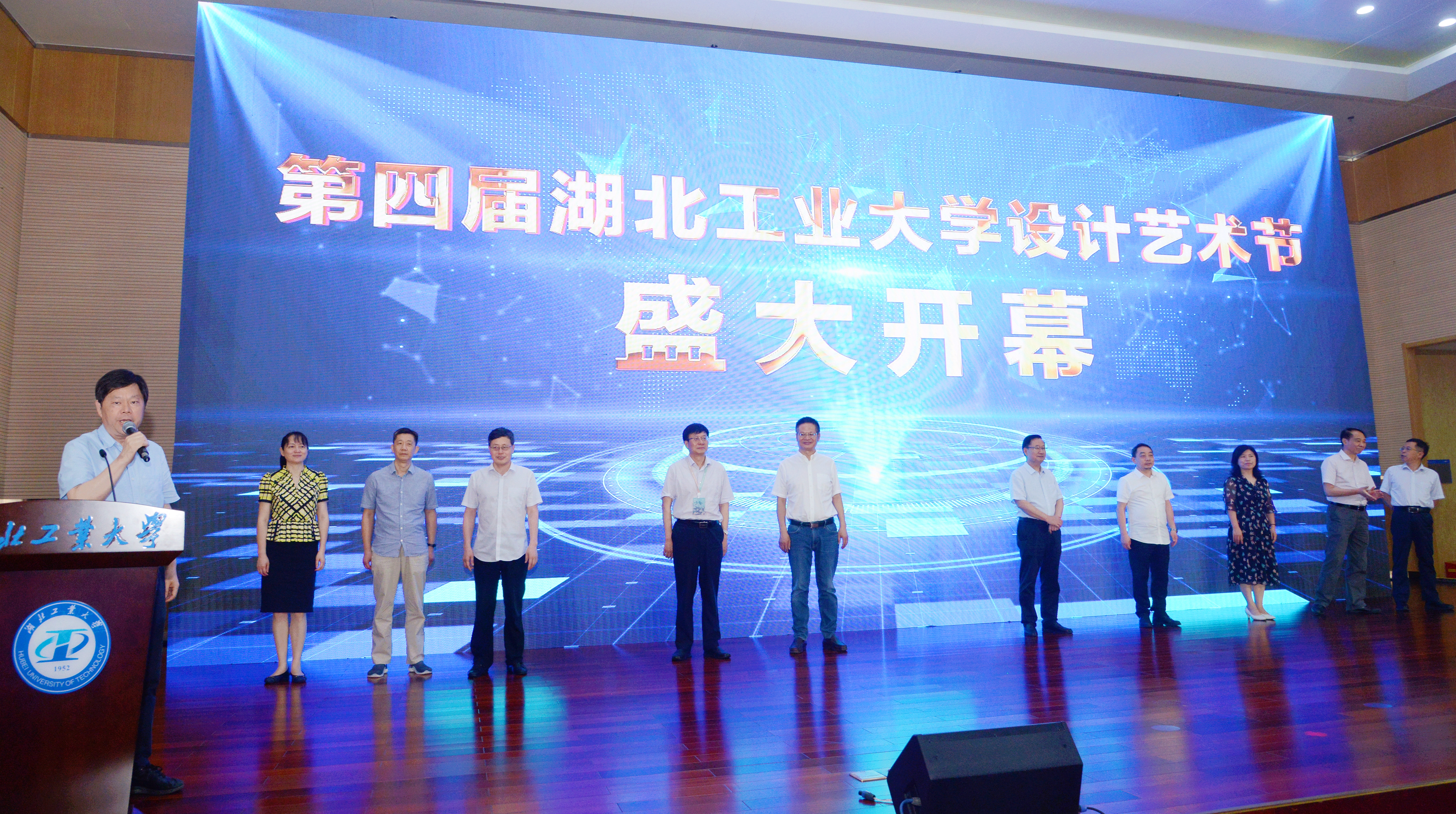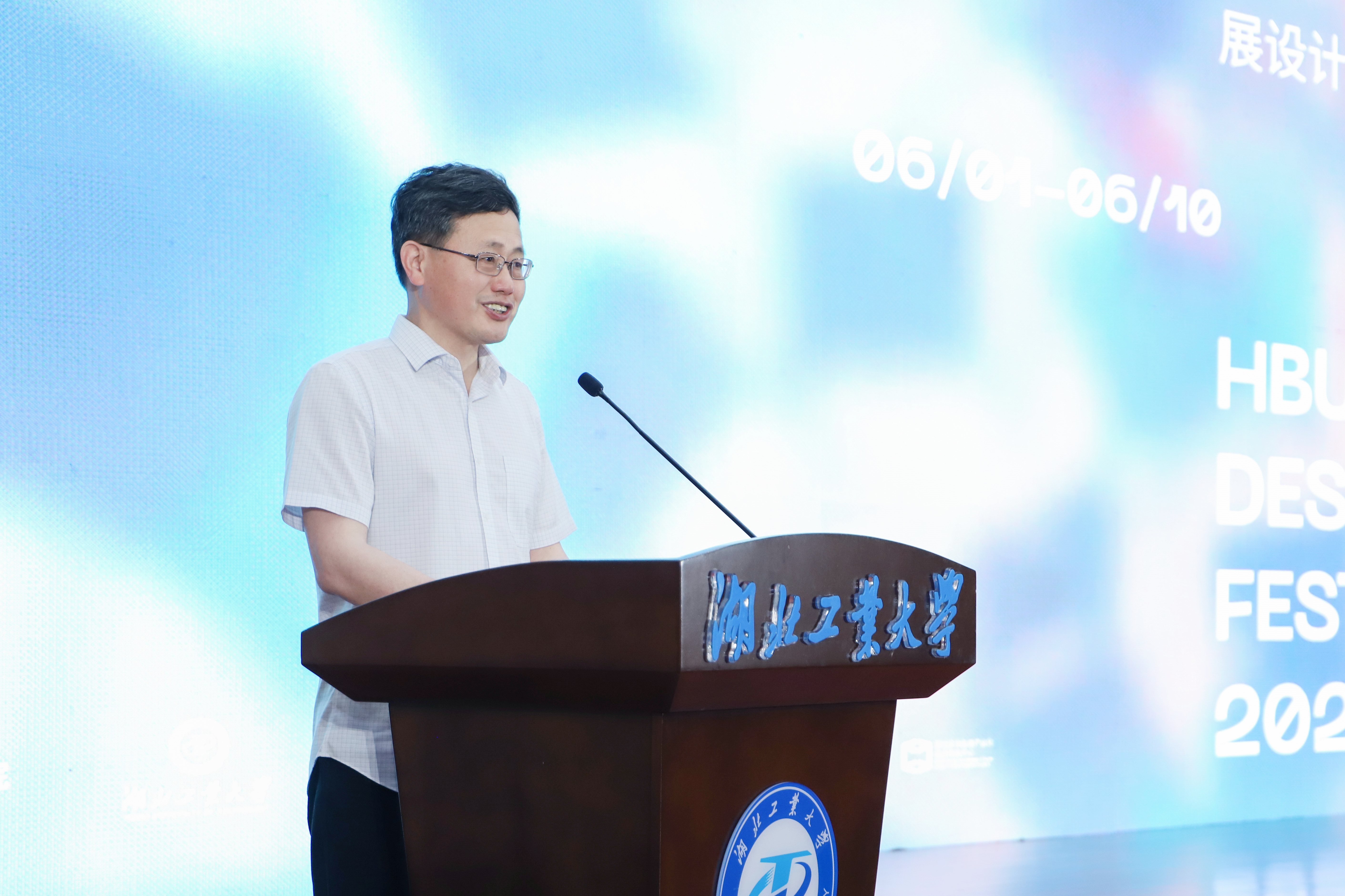 湖北美术学院党委副书记、副院长周峰致辞。他表示,湖工大艺术节作为产教融合的大平台、学生展示学习成果的大舞台,办出了特色,办出了水平。他希望湖工大青年学子能坚定信仰,勇于担当,在新时代的征程中,用灵感点亮生活,用设计创造价值。