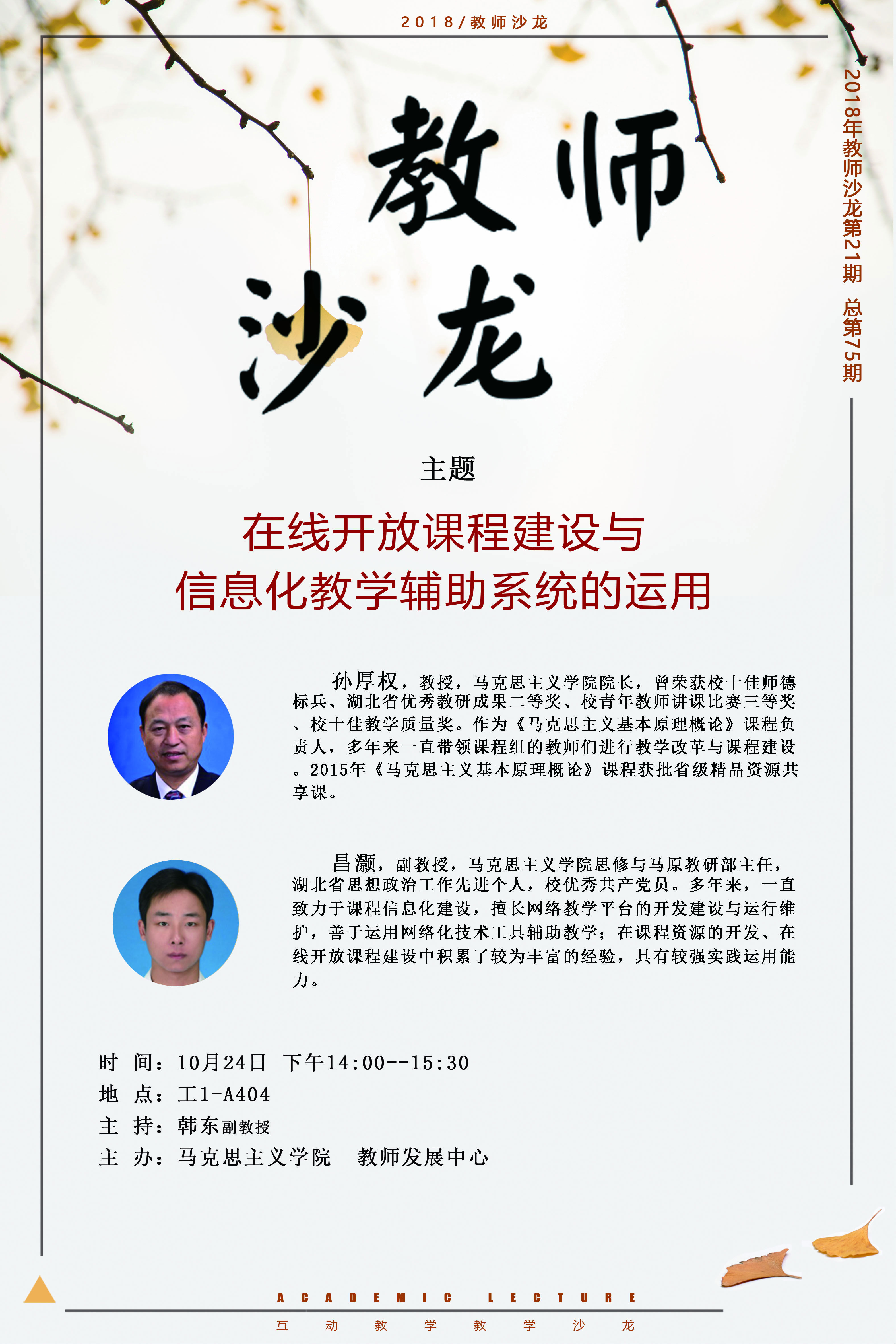 第75期教师(教学方法专题)沙龙活动预告: 在线开放课程建设与信息化教学辅助系统的运用