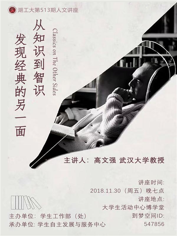 想要获取更多讲座消信息可以关注新浪微博“湖工大人文讲座”以及微信公众号“湖工大学声”“湖工大人文讲座2018”