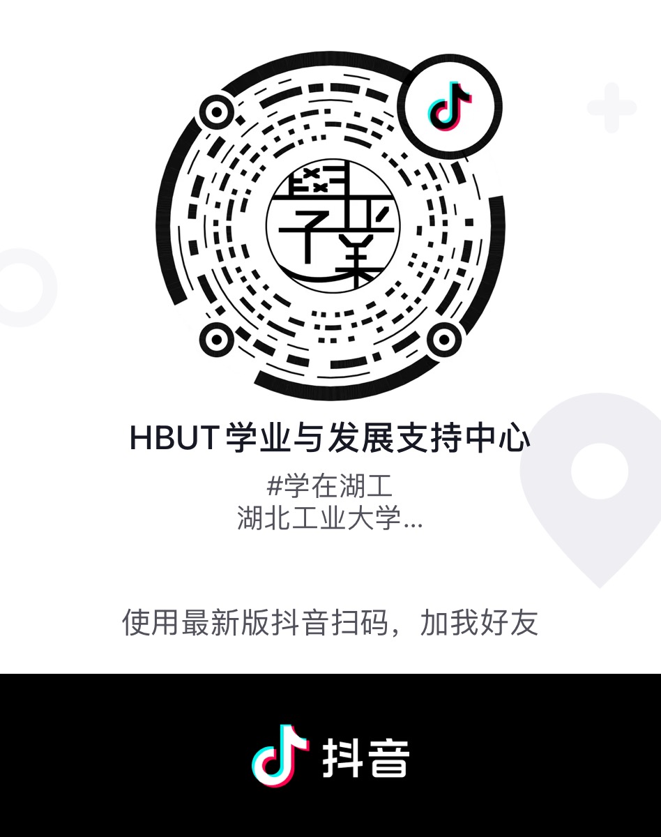请用抖音APP扫码关注“湖工大学声抖音平台”或“HBUT学业与发展支持中心抖音平台”授课课程