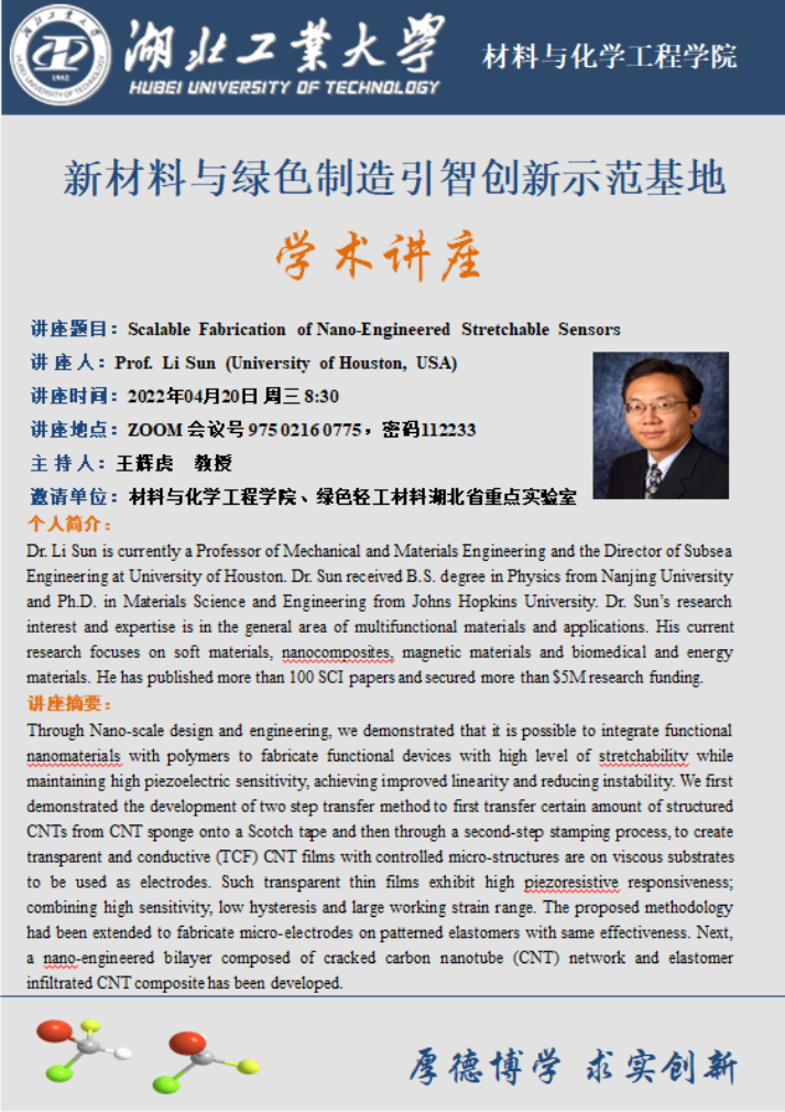 邀请单位:材料与化学工程学院、绿色轻工材料湖北省重点实验室