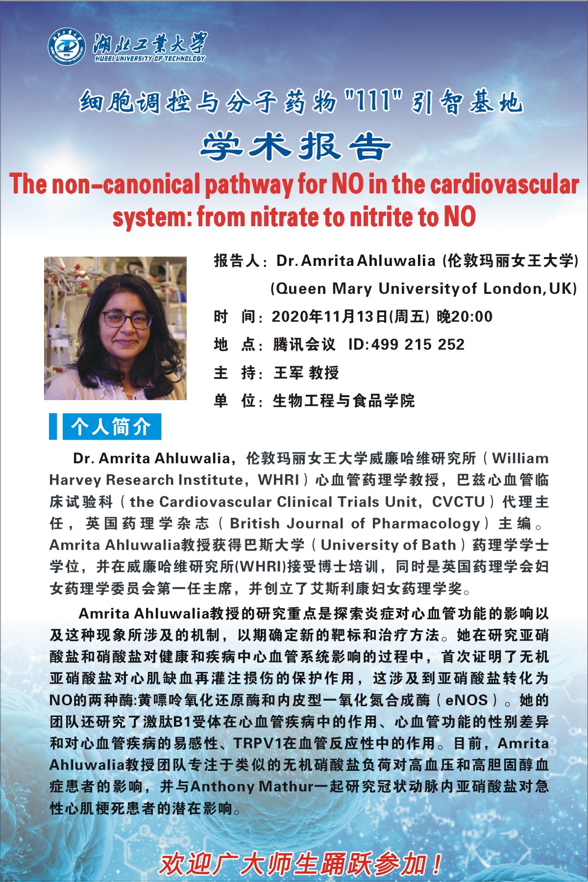 报告人:Dr. Amrita Ahluwalia (伦敦玛丽女王大学)(Queen Mary University of London, UK)
