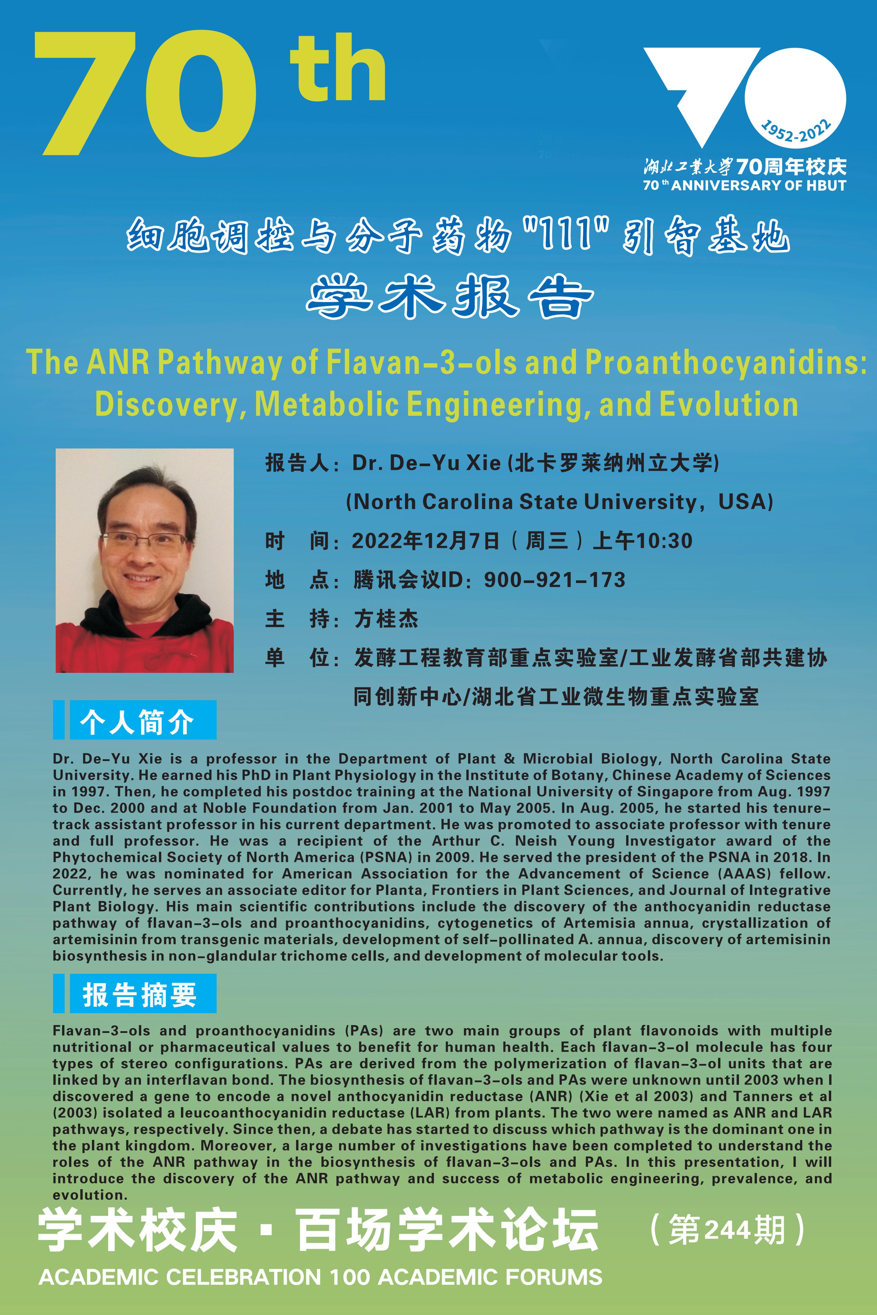 学术校庆·百场学术论坛--细胞调控与分子药物“111”引智基地学术报告(第244期 )