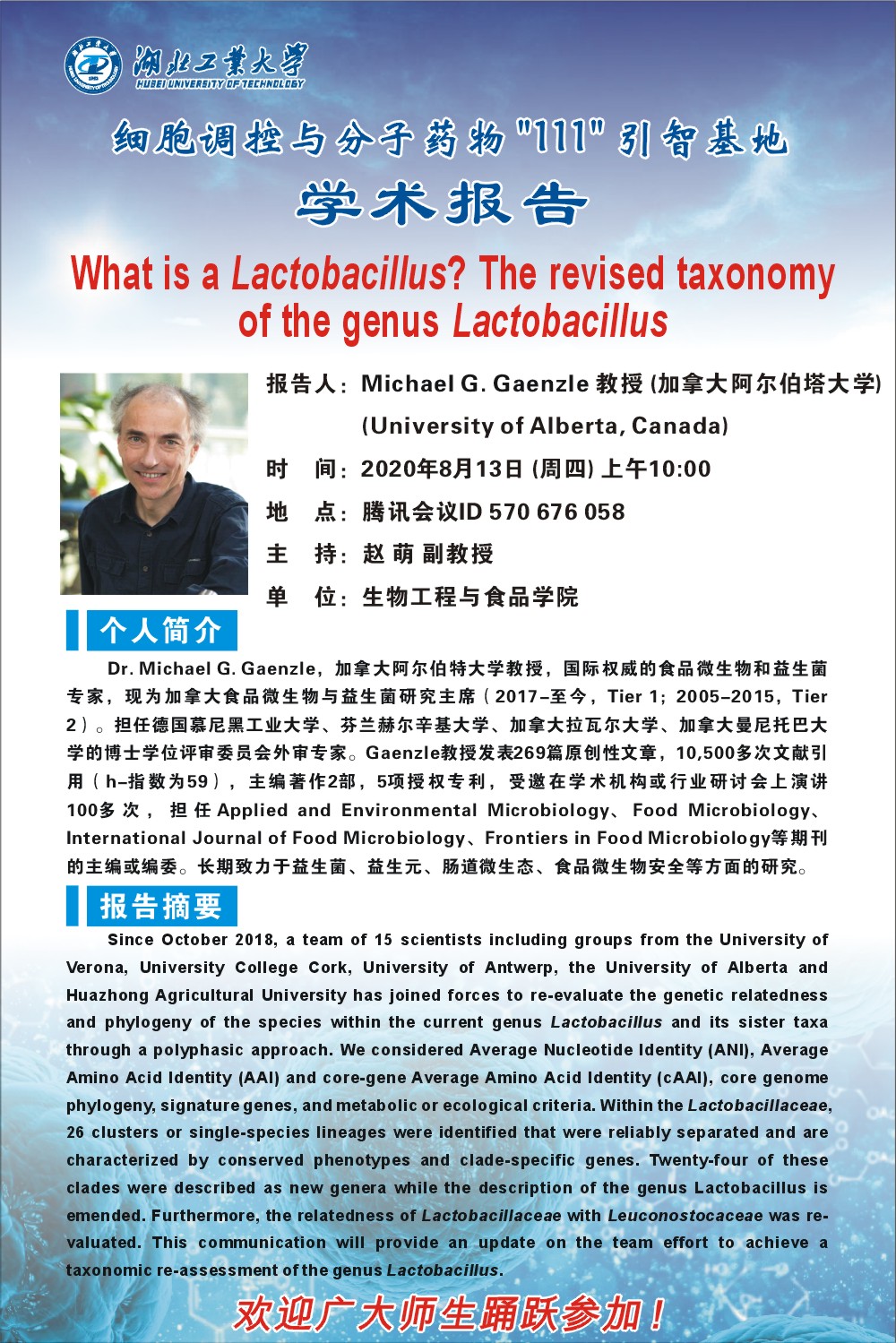 报告人:Michael G. Gänzle 教授 加拿大阿尔伯塔大学(University of Alberta, Canada)