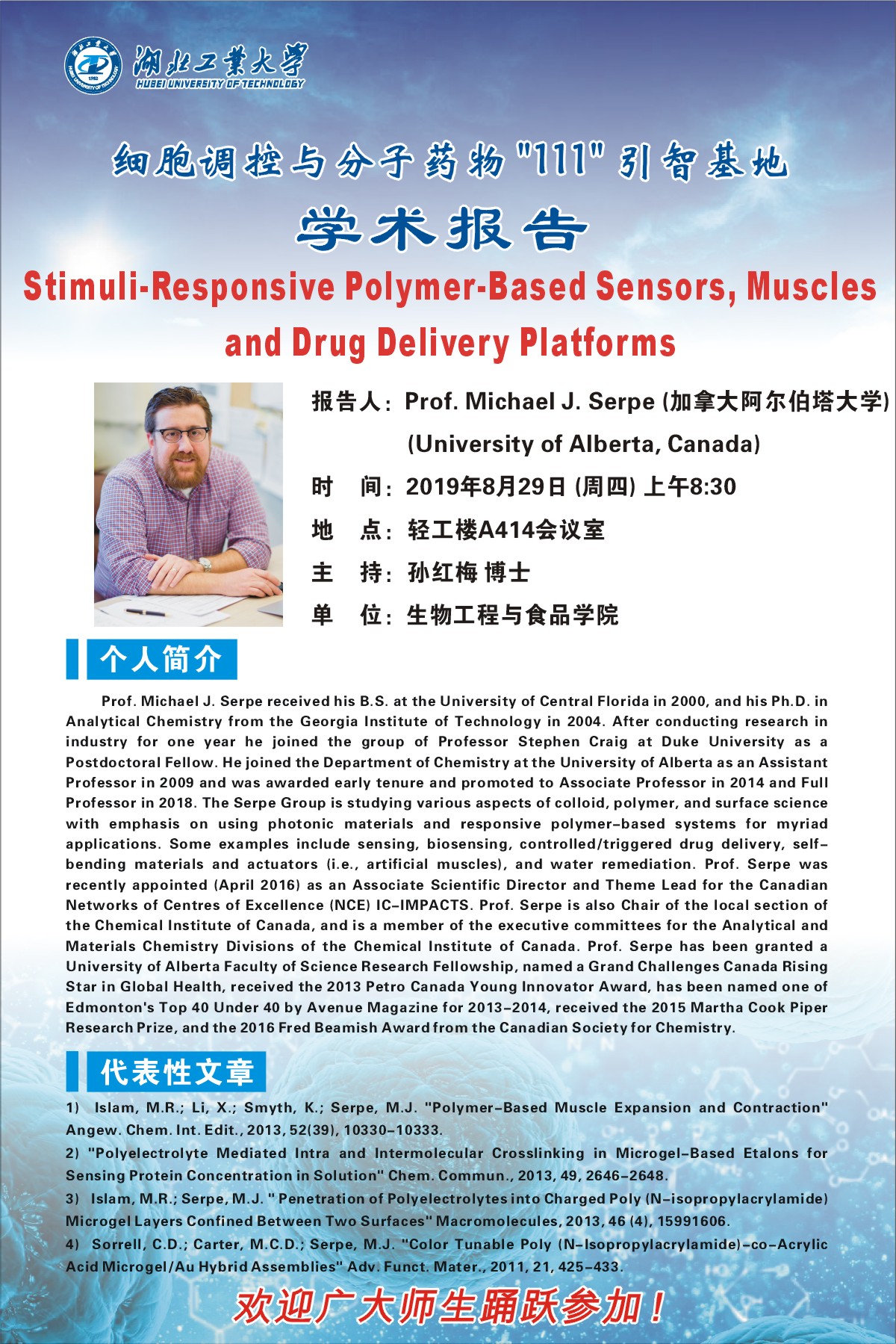 报告人:Prof. Michael J. Serpe 加拿大阿尔伯塔大学(University of Alberta, Canada)