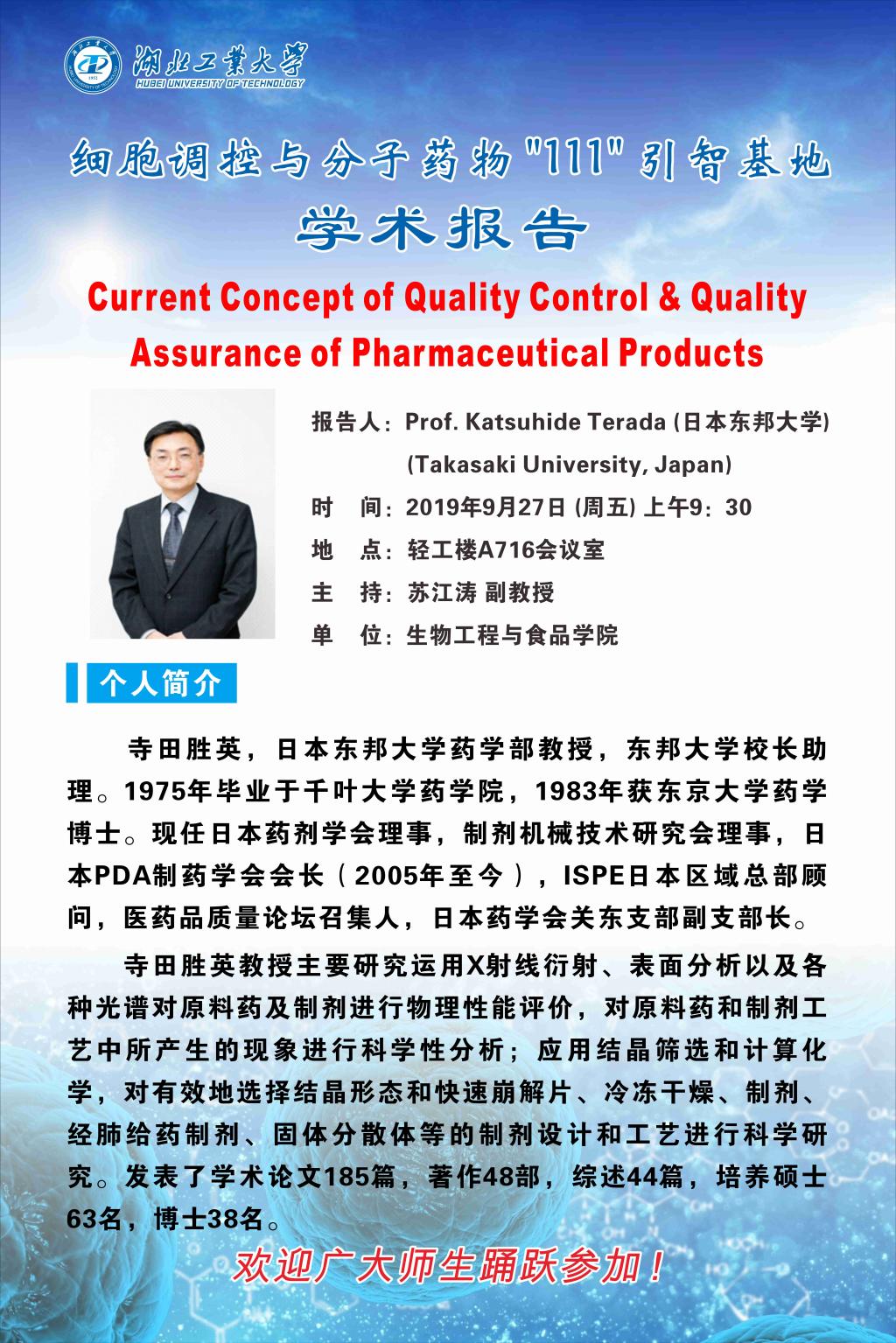 报告人:Prof. Katsuhide Terada 日本东邦大学(Takasaki University, Japan)