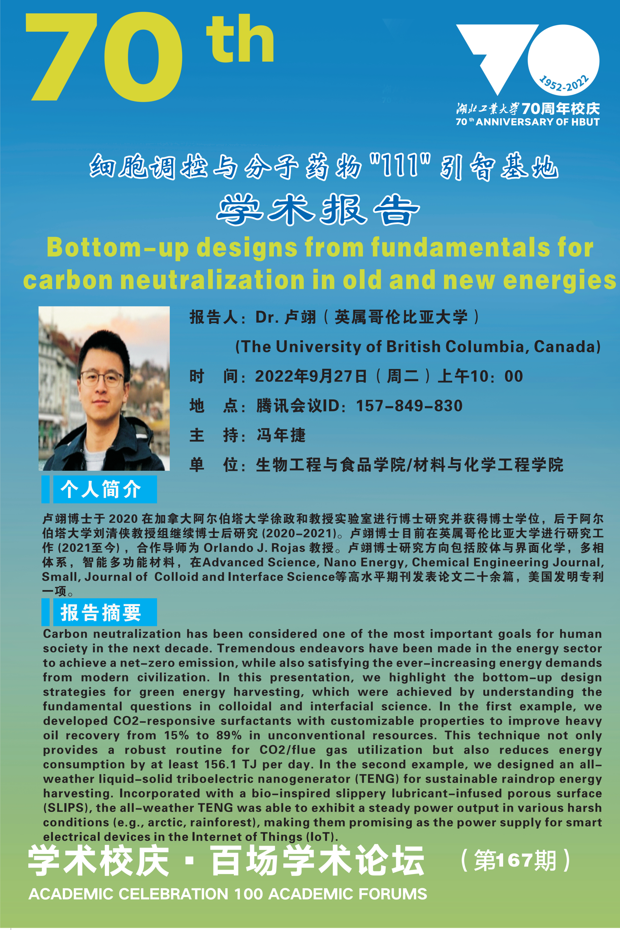 学术校庆·百场学术论坛--细胞调控与分子药物“111”引智基地学术报告(第167期 )