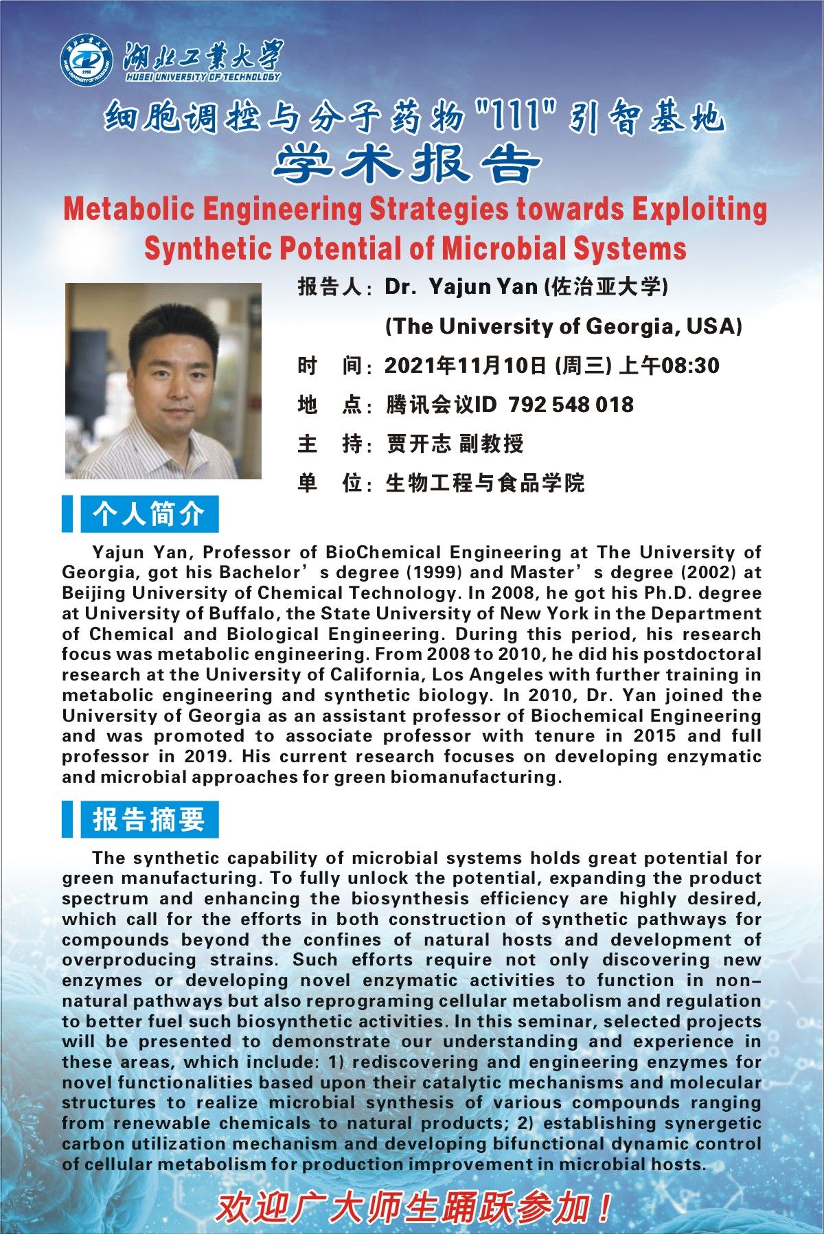 报告人:Dr. Yajun Yan(佐治亚大学)(The University of Georgia, USA)