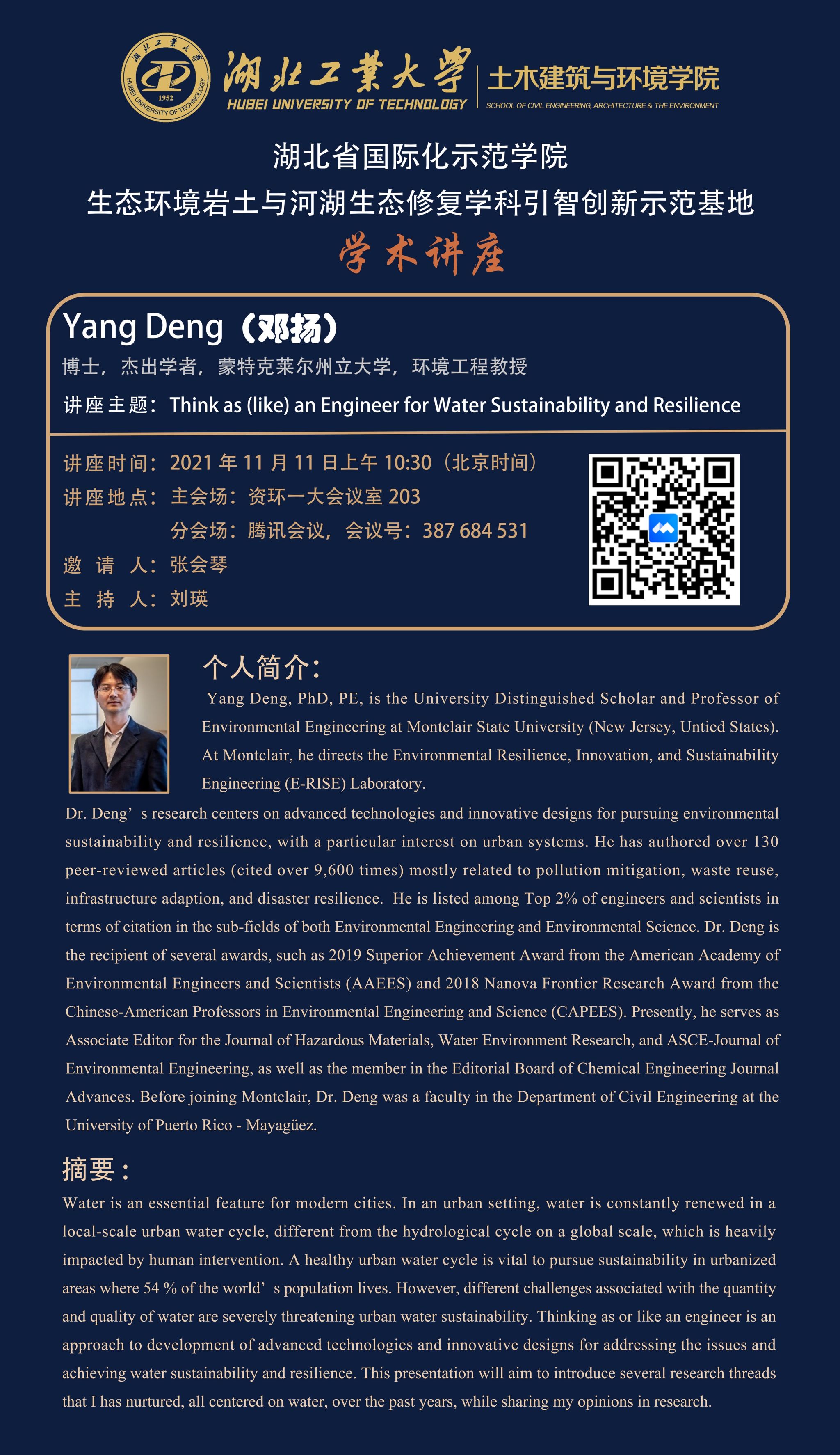 讲座主题:Think as (like) an Engineer for Water Sustainability and Resilience