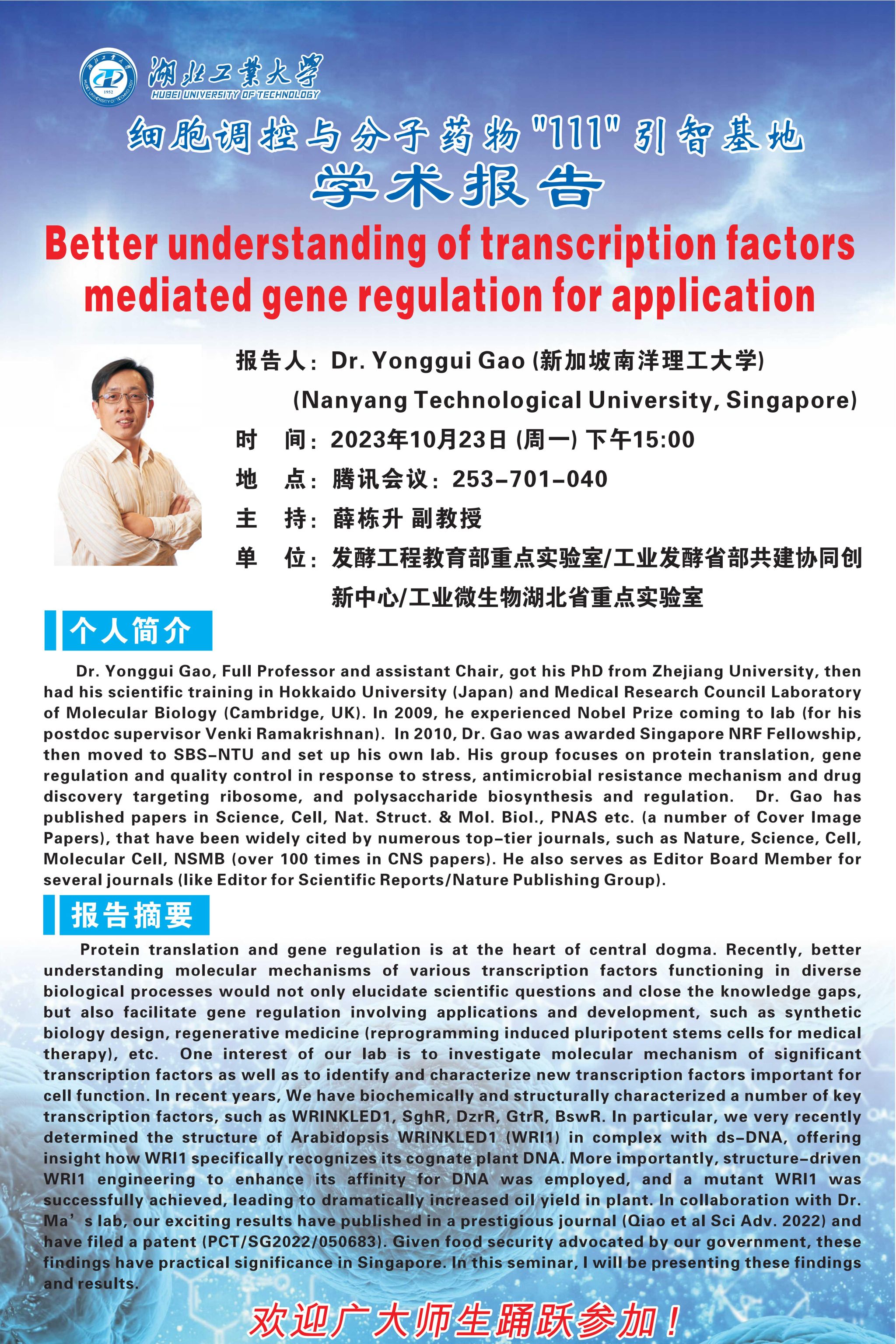 第158期 细胞调控与分子药物“111”引智基地学术报告