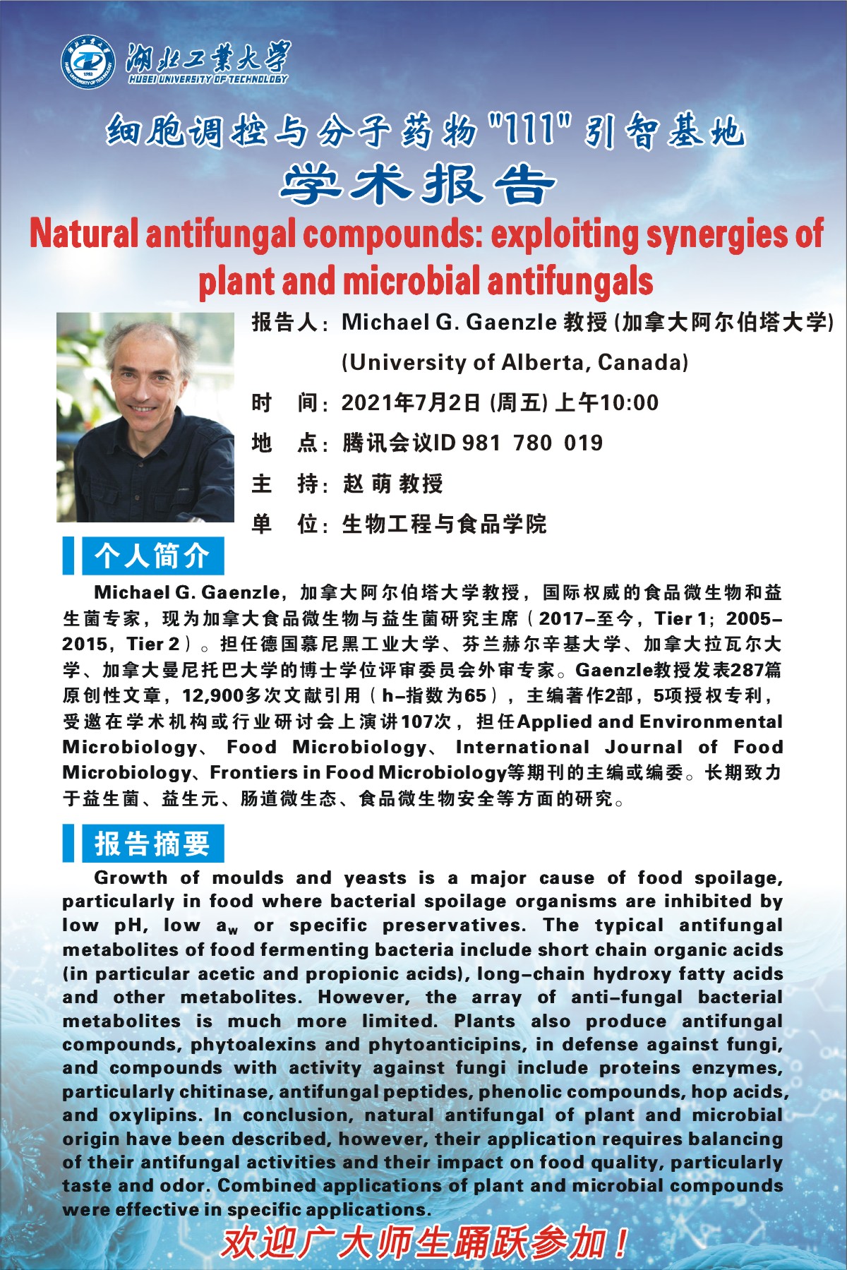 报告人:Michael G. Gaenzle 教授(加拿大阿尔伯塔大学)(University of Alberta, Canada)