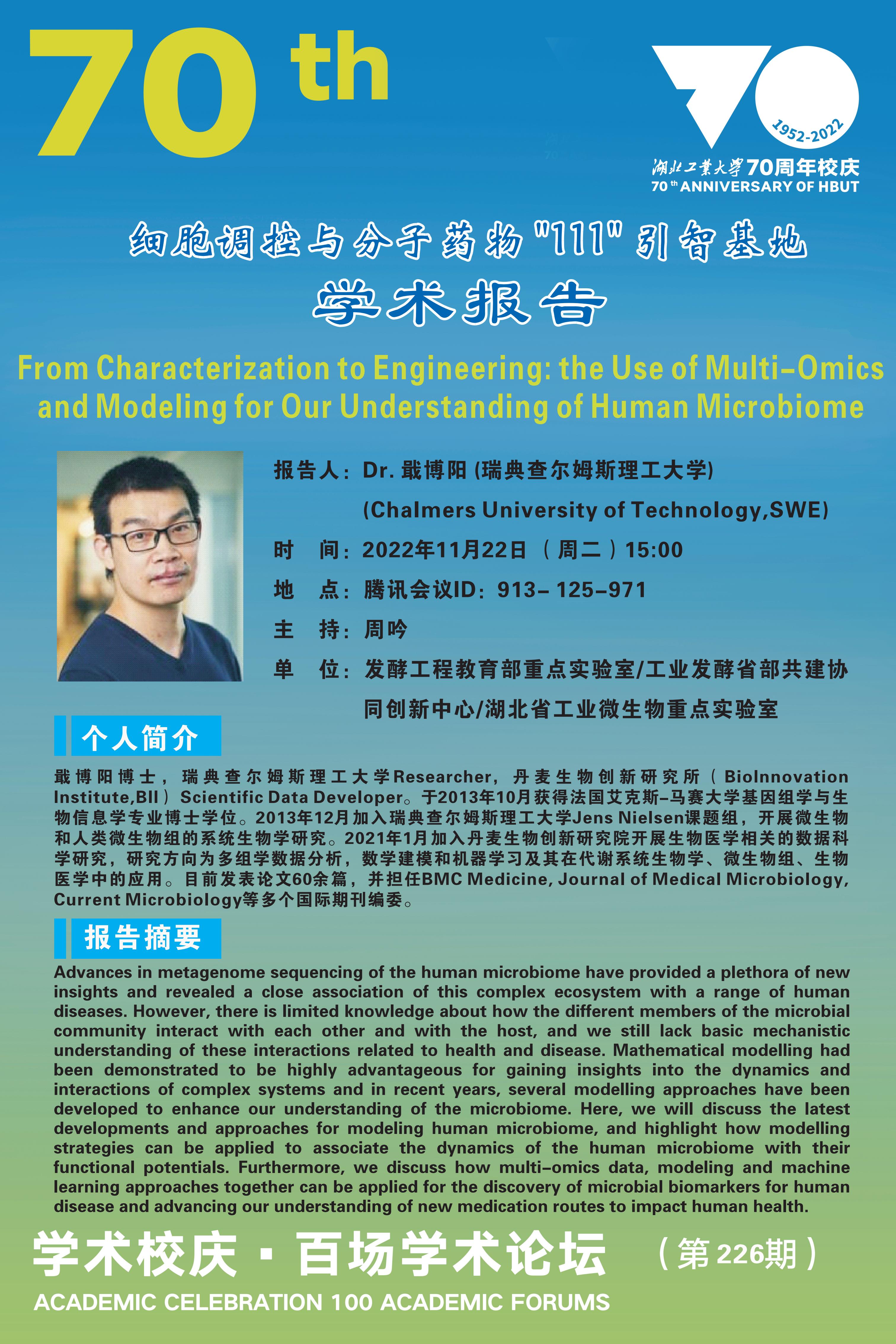 学术校庆·百场学术论坛--细胞调控与分子药物“111”引智基地学术报告(第226期 )