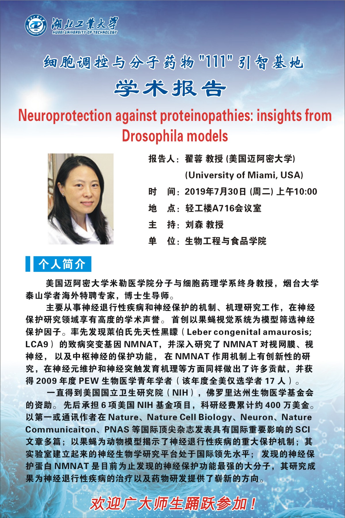报告人:翟蓉 教授 美国迈阿密大学(University of Miami, USA)