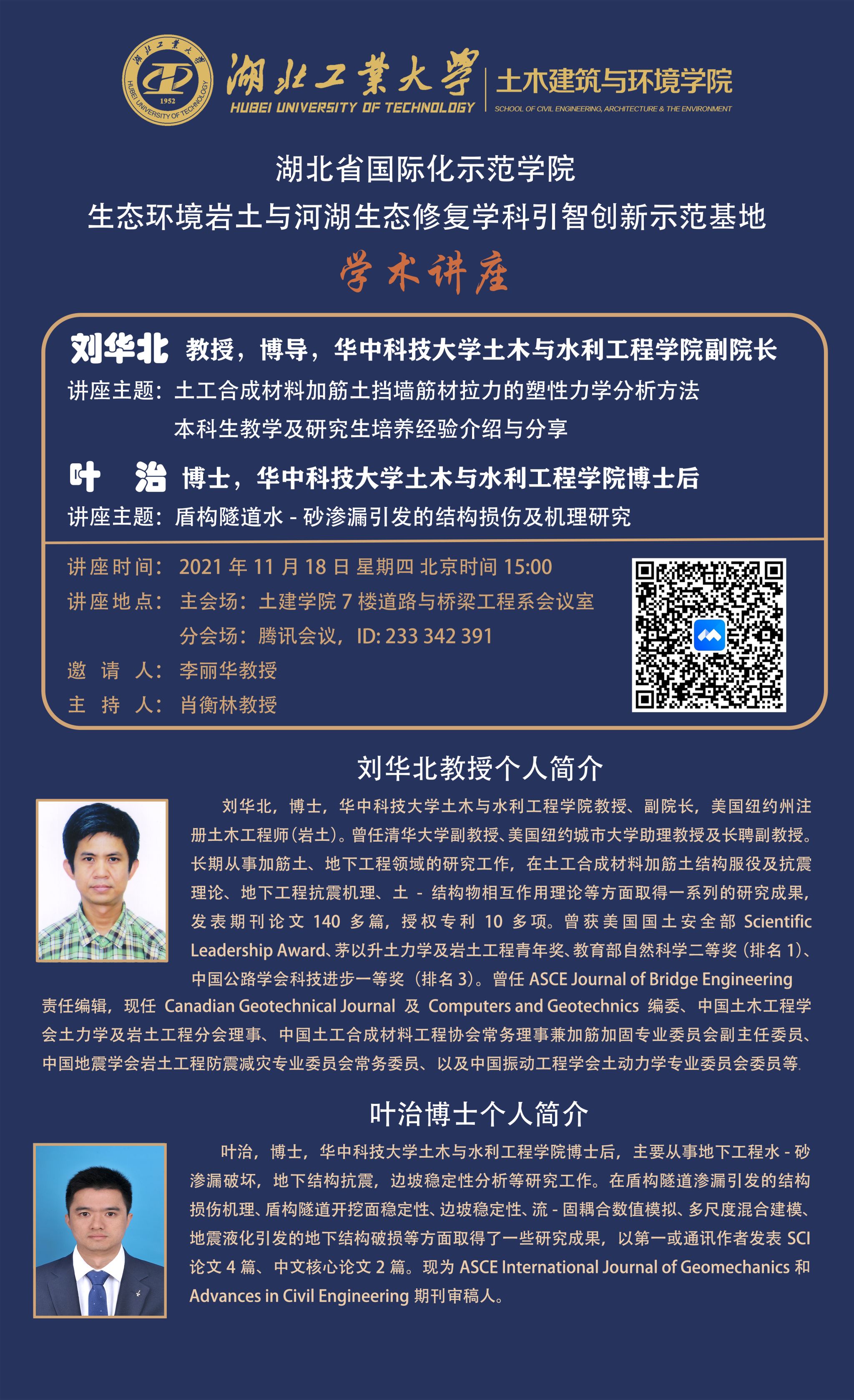 生态环境岩土与河湖生态修复学科引智创新示范基地学术讲座(第15期)