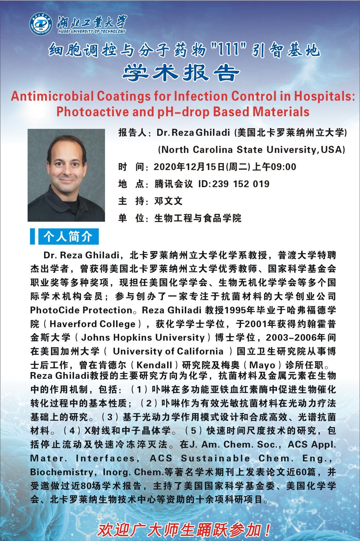 报告人:Dr. Reza Ghiladi(美国北卡罗来纳州立大学)(North Carolina State University, USA)