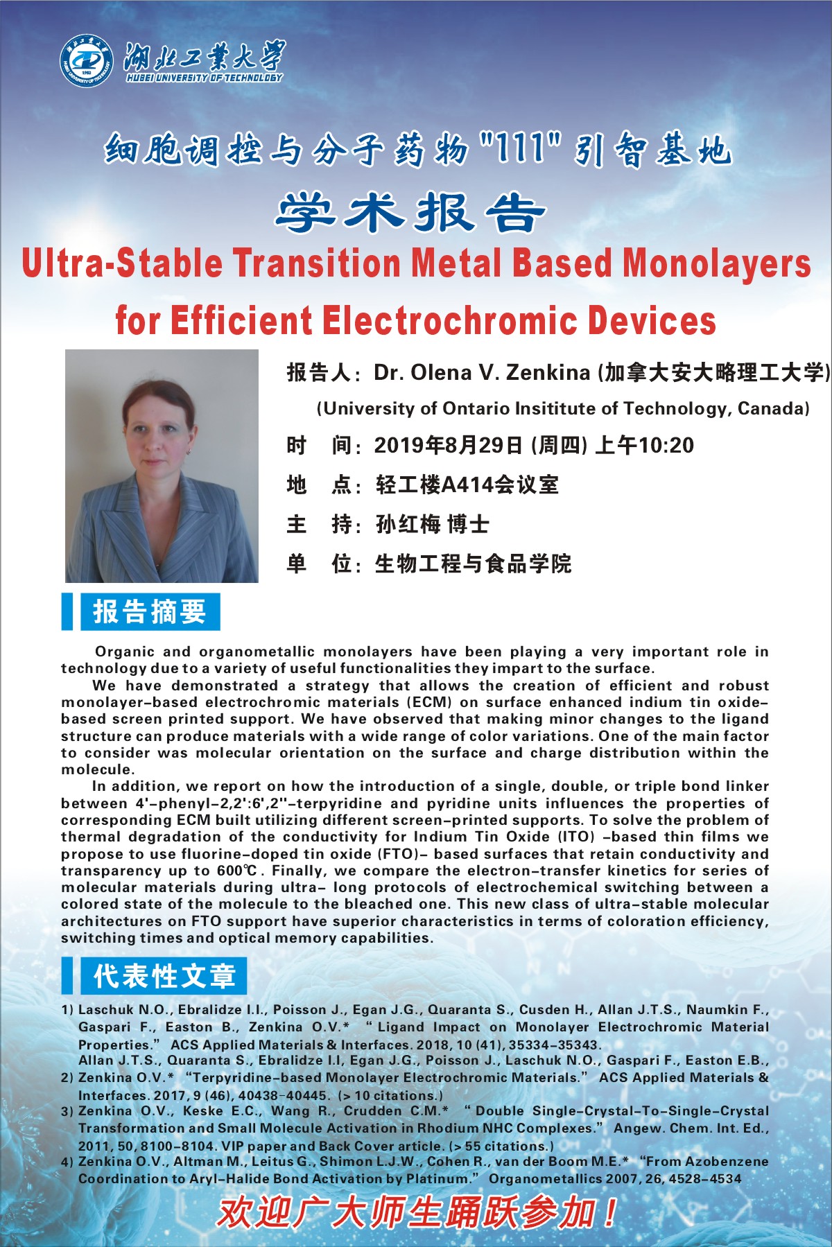 报告人:Dr. Olena V. Zenkina 加拿大安大略理工大学(University of Ontario Insititute of Technology, Canada)
