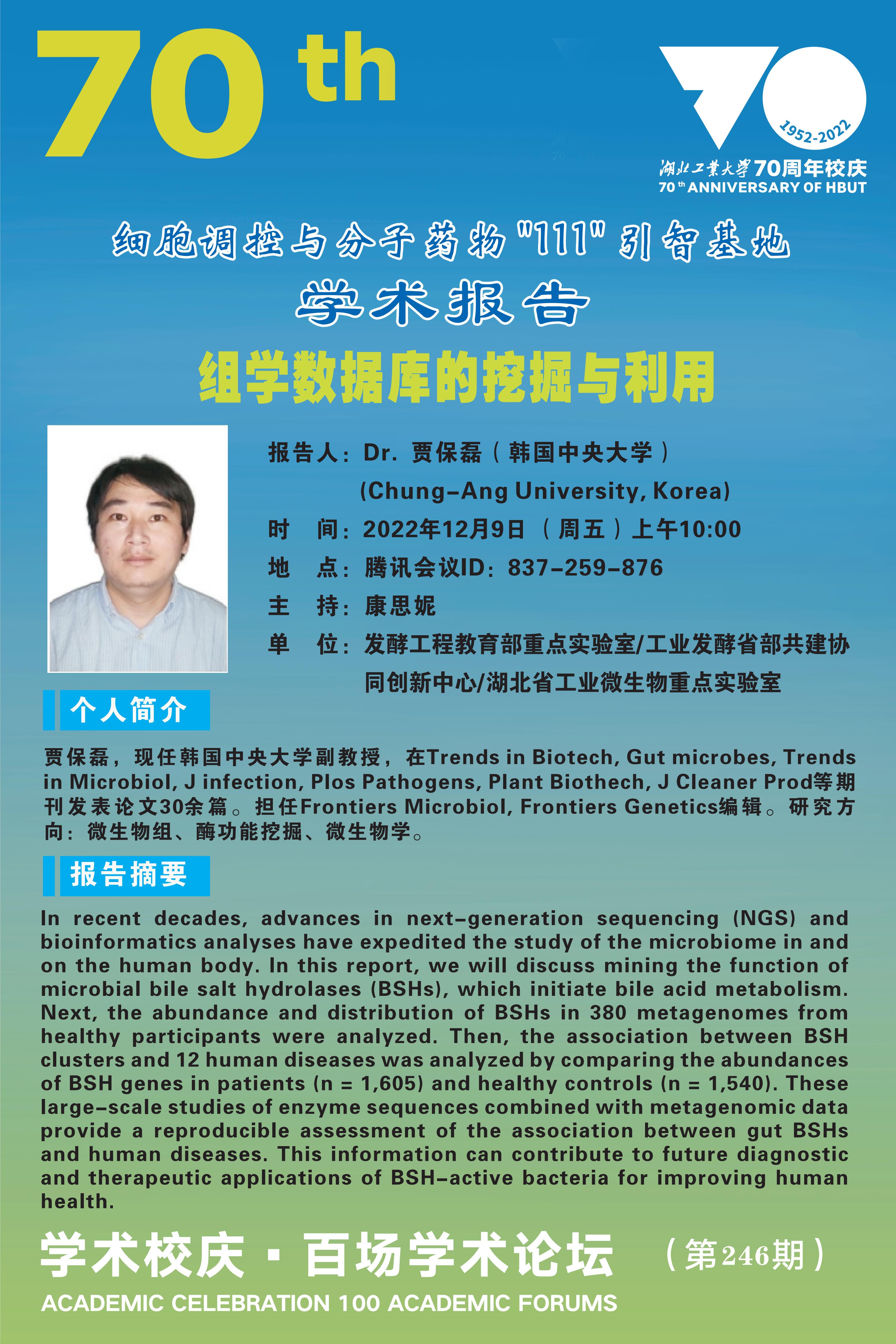 学术校庆·百场学术论坛--细胞调控与分子药物“111”引智基地学术报告(第246期 )