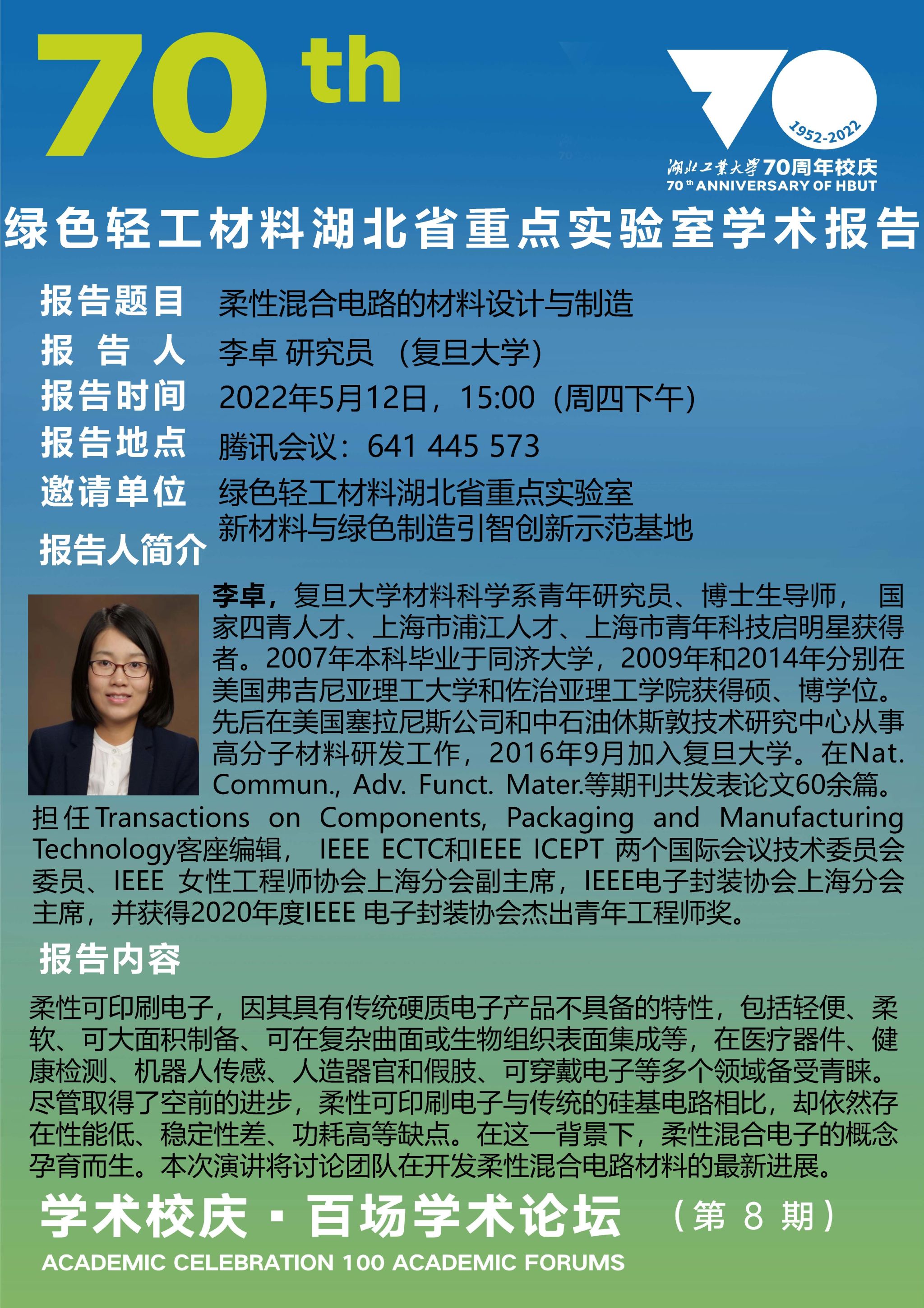 学术校庆·百场学术论坛No.8——绿色轻工材料湖北省重点实验室学术讲座