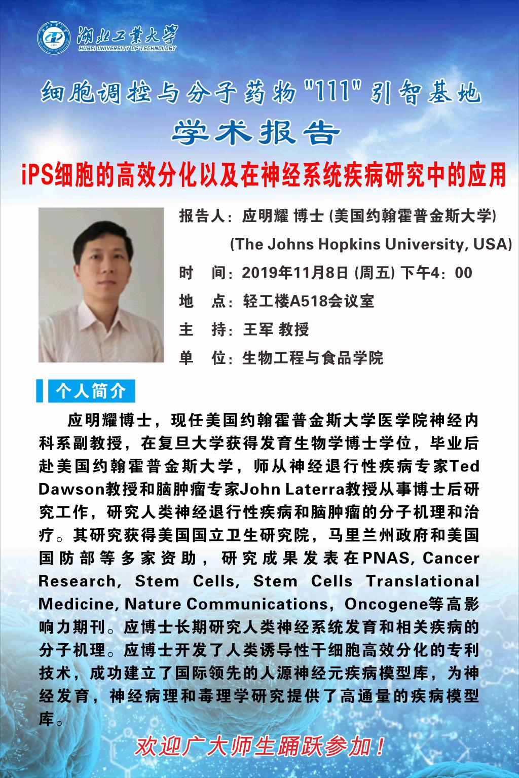 报告人:应明耀 博士 美国约翰霍普金斯大学(The Johns Hopkins University, USA)