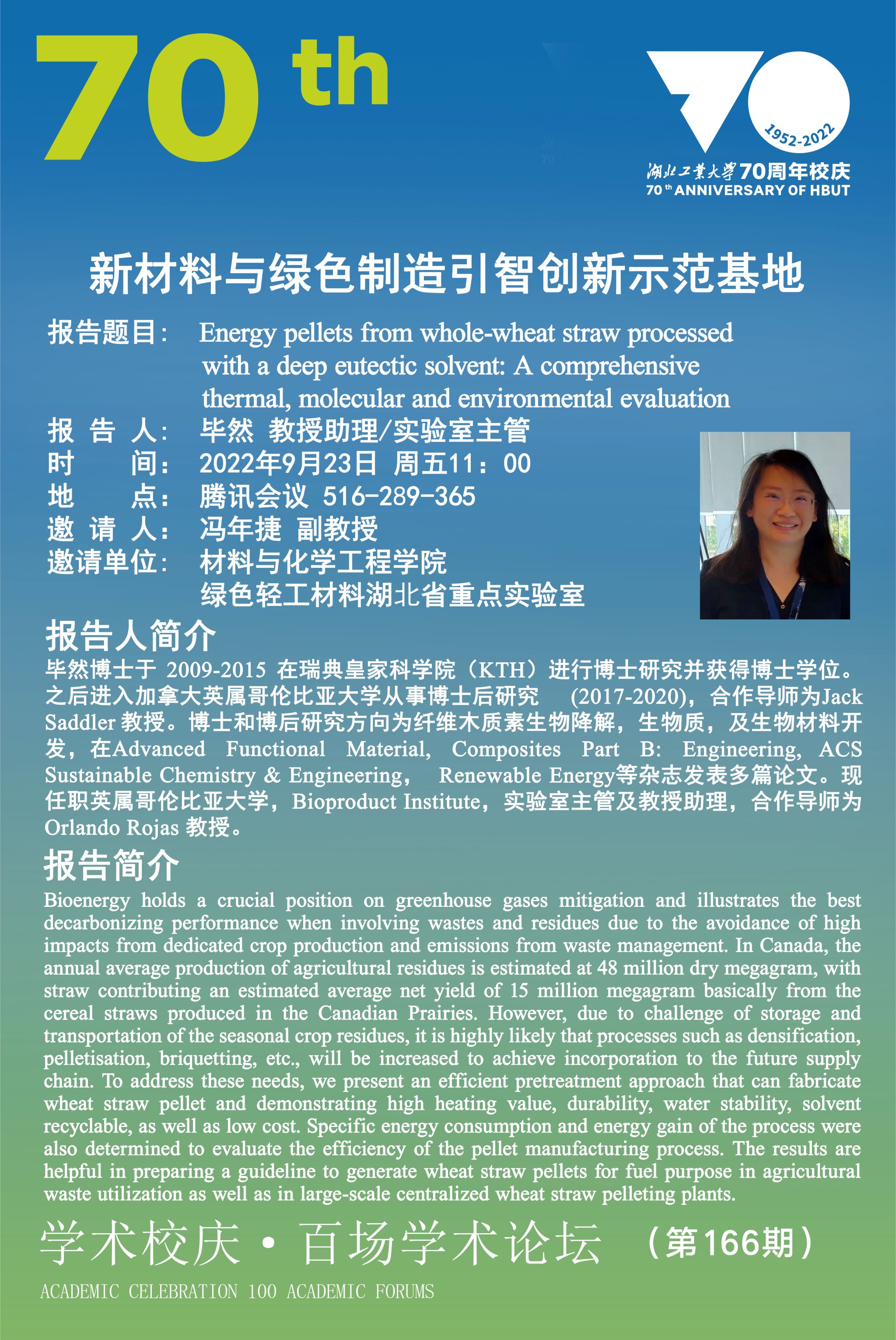 学术校庆·百场学术论坛--新材料与绿色制造引智创新示范基地(第166期)