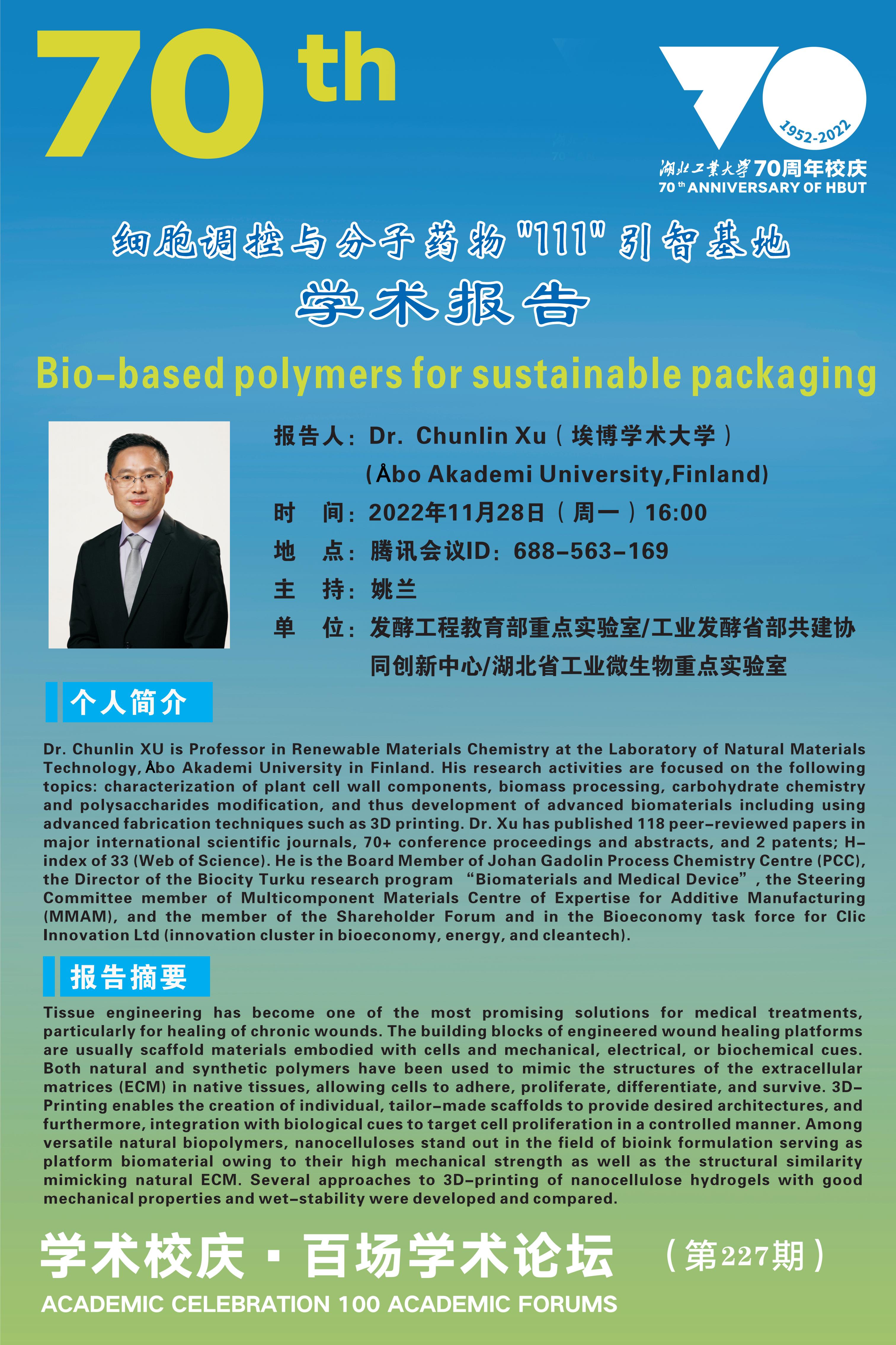 学术校庆·百场学术论坛--细胞调控与分子药物“111”引智基地学术报告(第227期 )