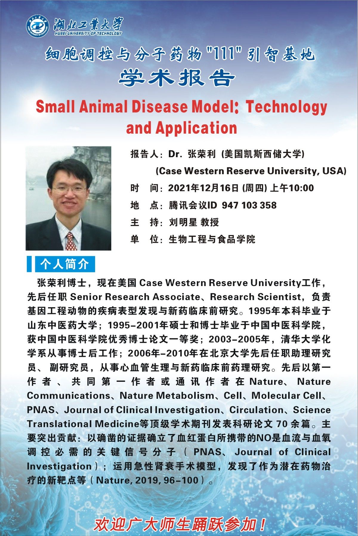 报告人:Dr. 张荣利(美国凯斯西储大学)(Case Western Reserve University, USA)