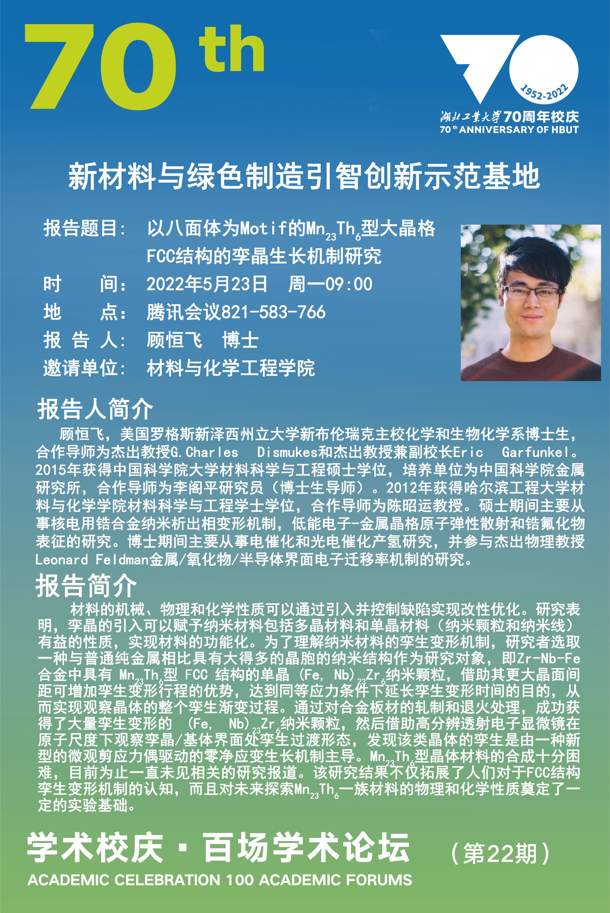 学术校庆·百场学术论坛--新材料与绿色制造引智创新示范基地学术讲座(第13期)