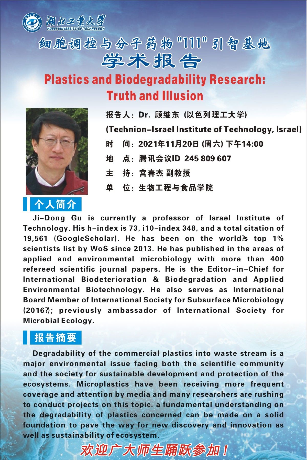 报告人:Dr. 顾继东(以色列理工大学)(Technion-Israel Institute of Technology, Israel)