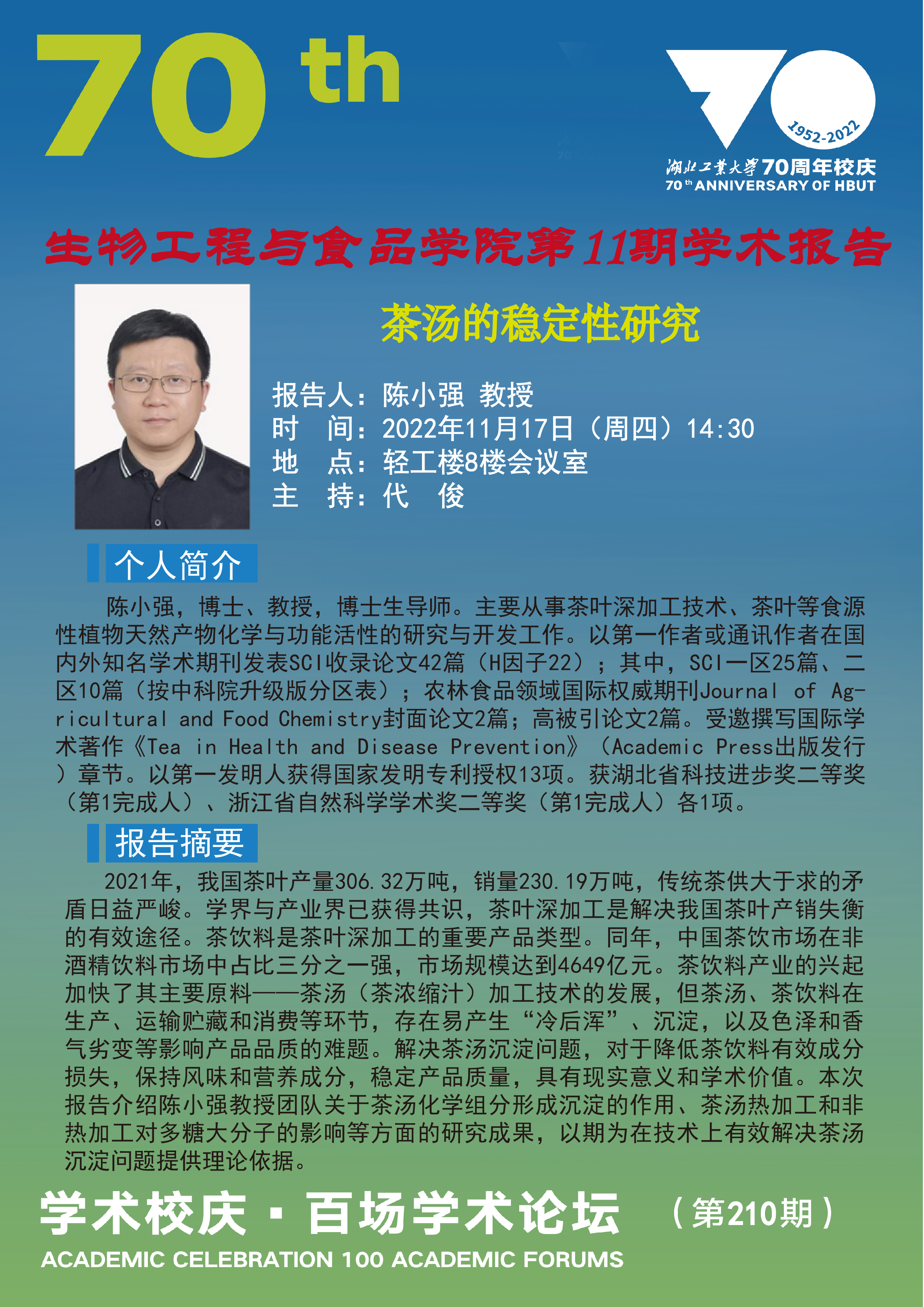 学术校庆·百场学术论坛--生物工程与食品学院学术报告(第210期)