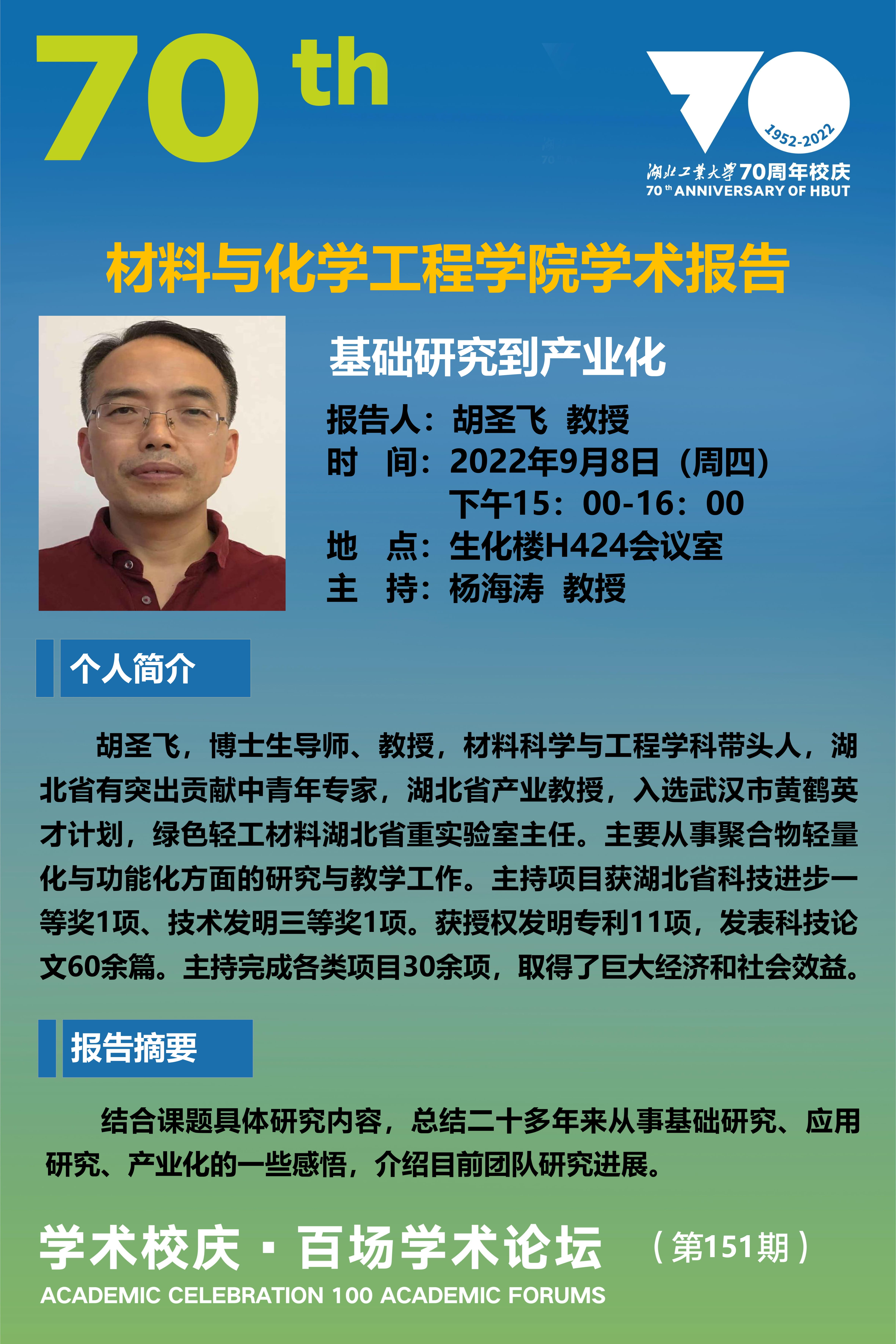 学术校庆·百场学术论坛--材料与化学工程学院学术报告(第151期)