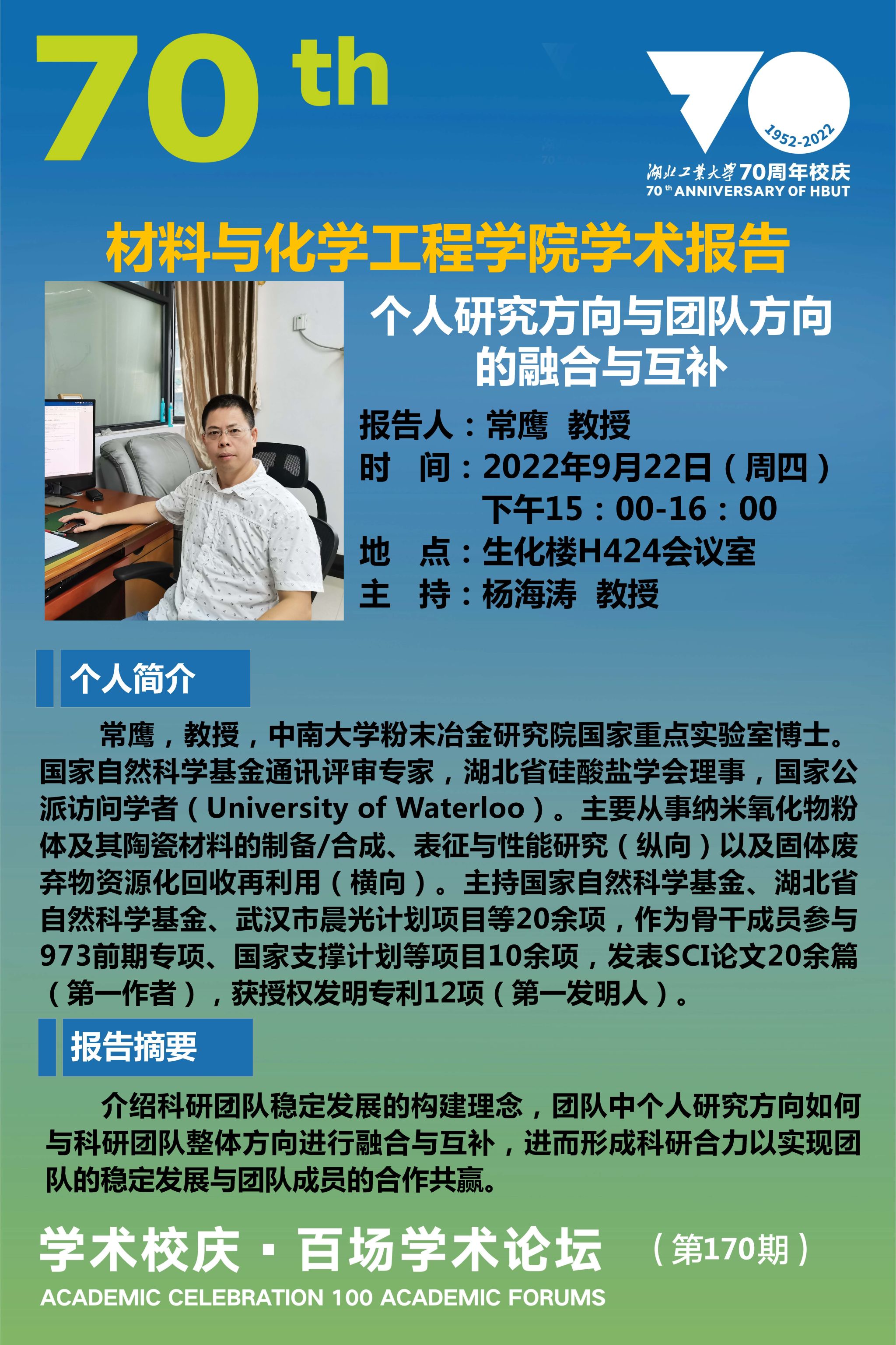 学术校庆·百场学术论坛--材料与化学工程学院学术报告(第170期)