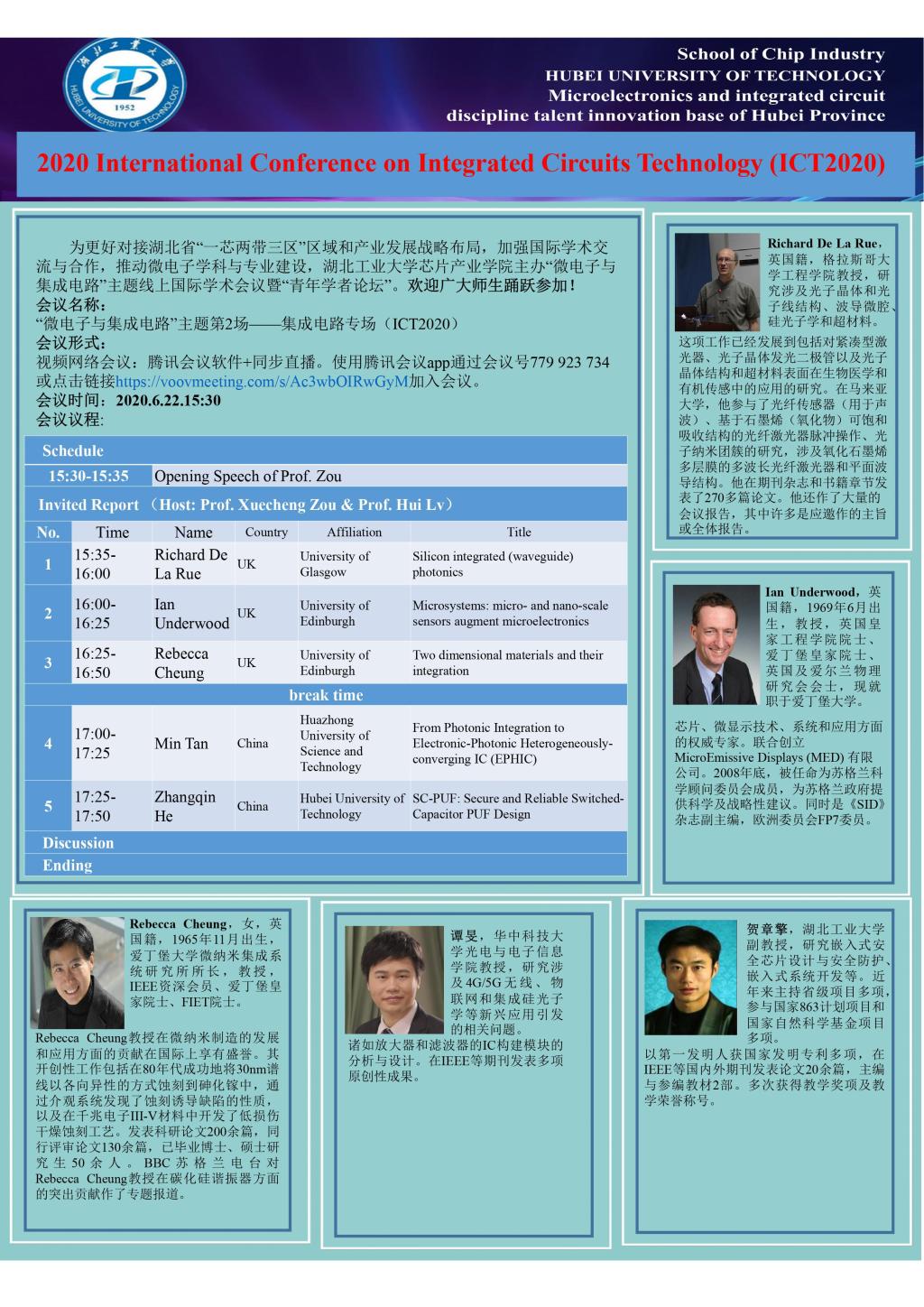 “微电子与集成电路”主题国际学术会议第2场——集成电路专场(ICT2020)