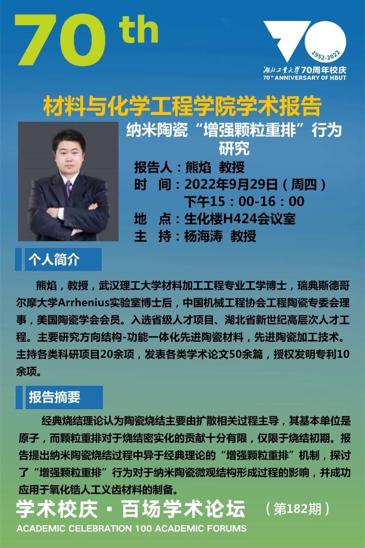 学术校庆·百场学术论坛--材料与化学工程学院学术报告(第182期)