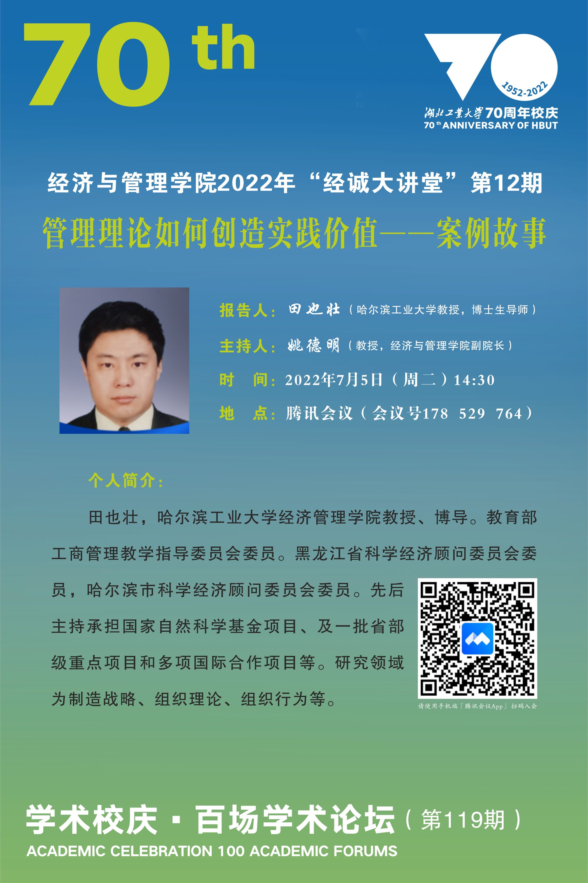 学术校庆·百场学术论坛--经济与管理学院2022年“经诚大讲堂”第12期