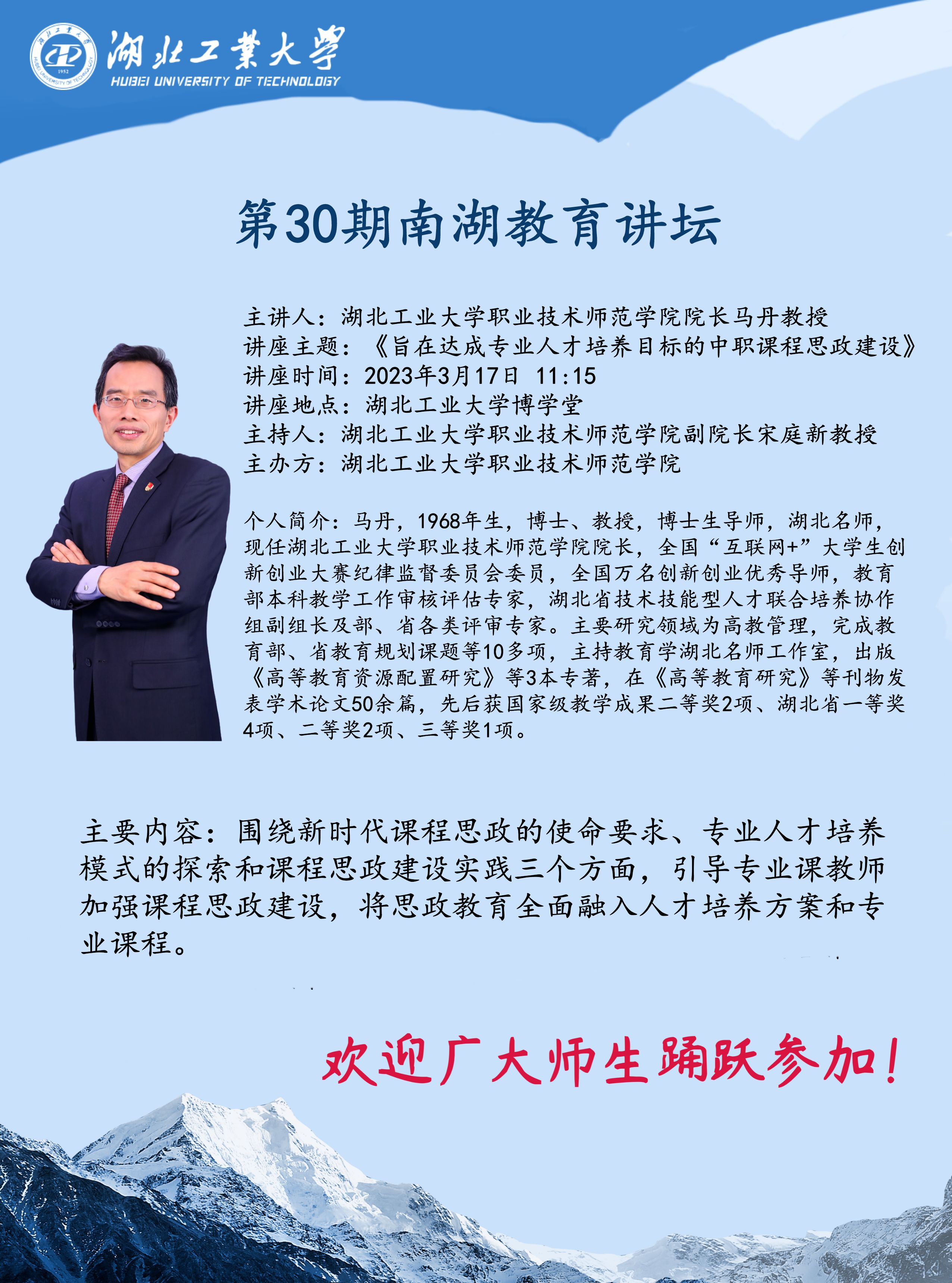 职业技术师范学院第30期南湖教育讲坛预告
