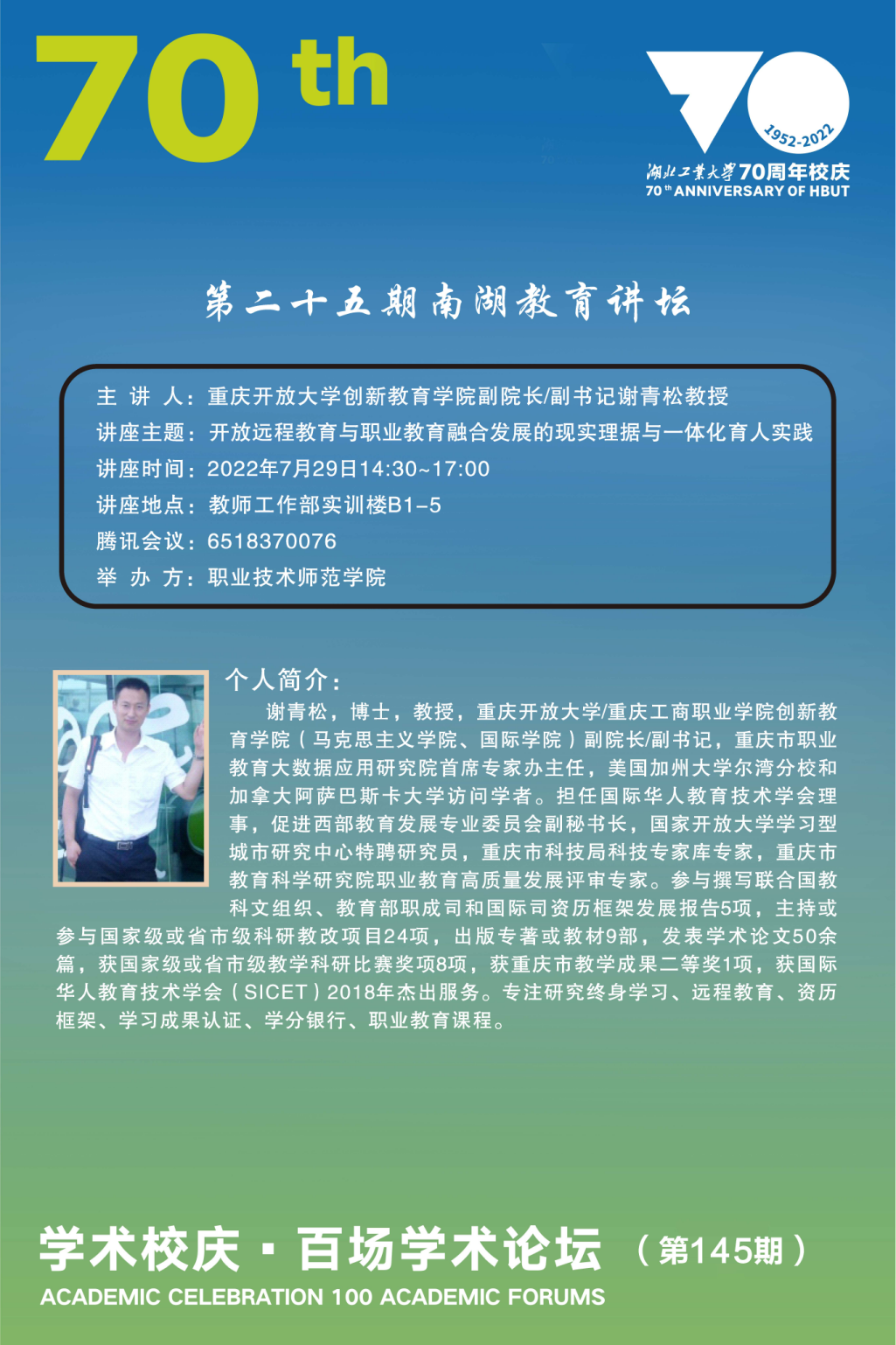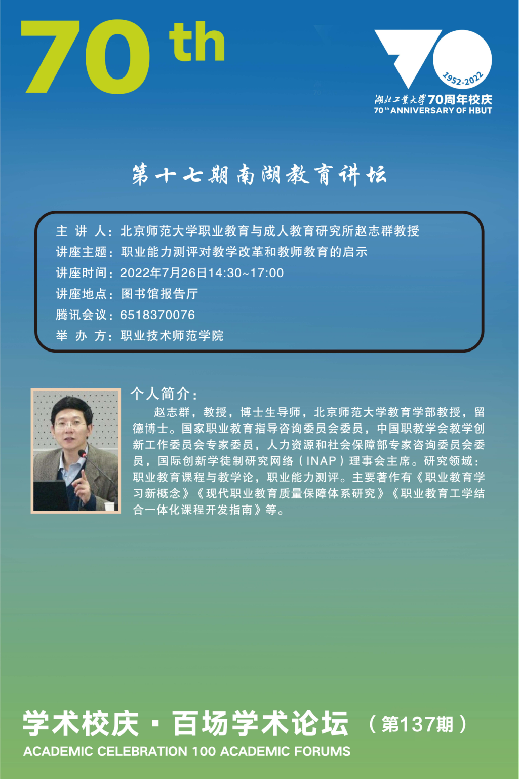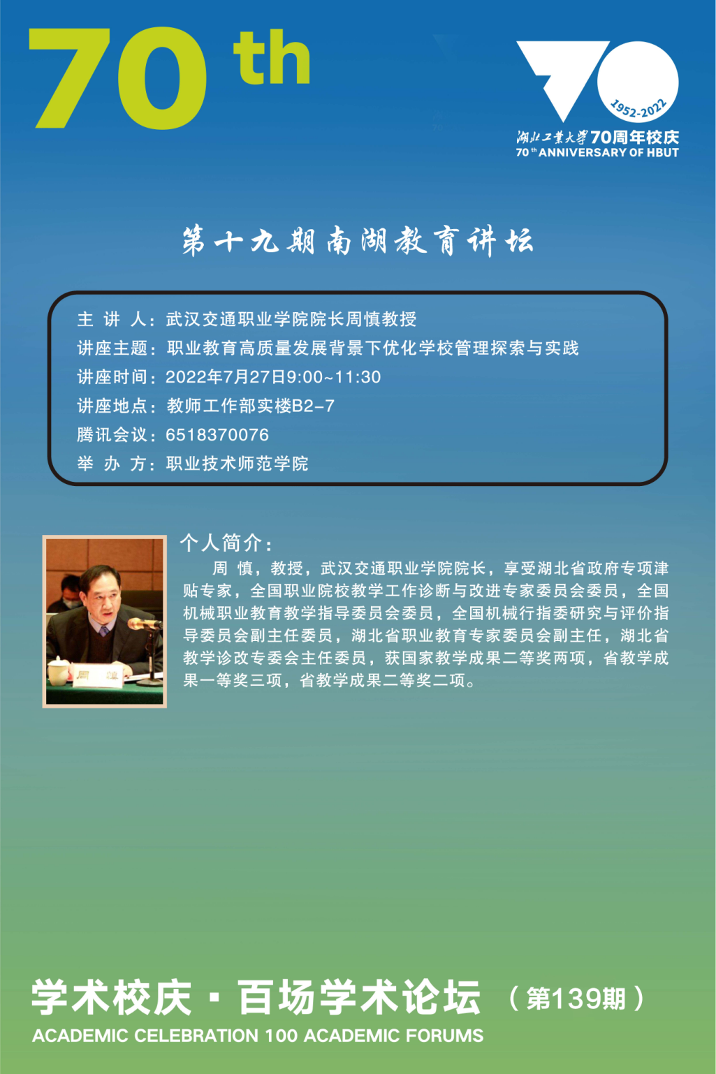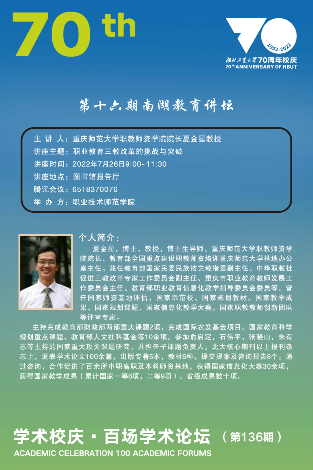 学术校庆·百场学术论坛--职业技术师范学院迎接70周年校庆系列讲座