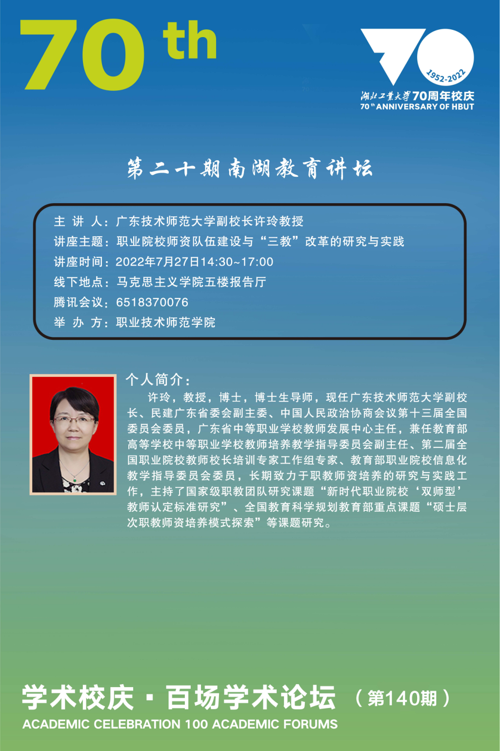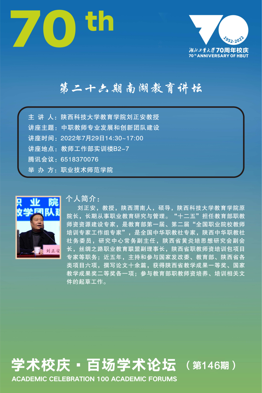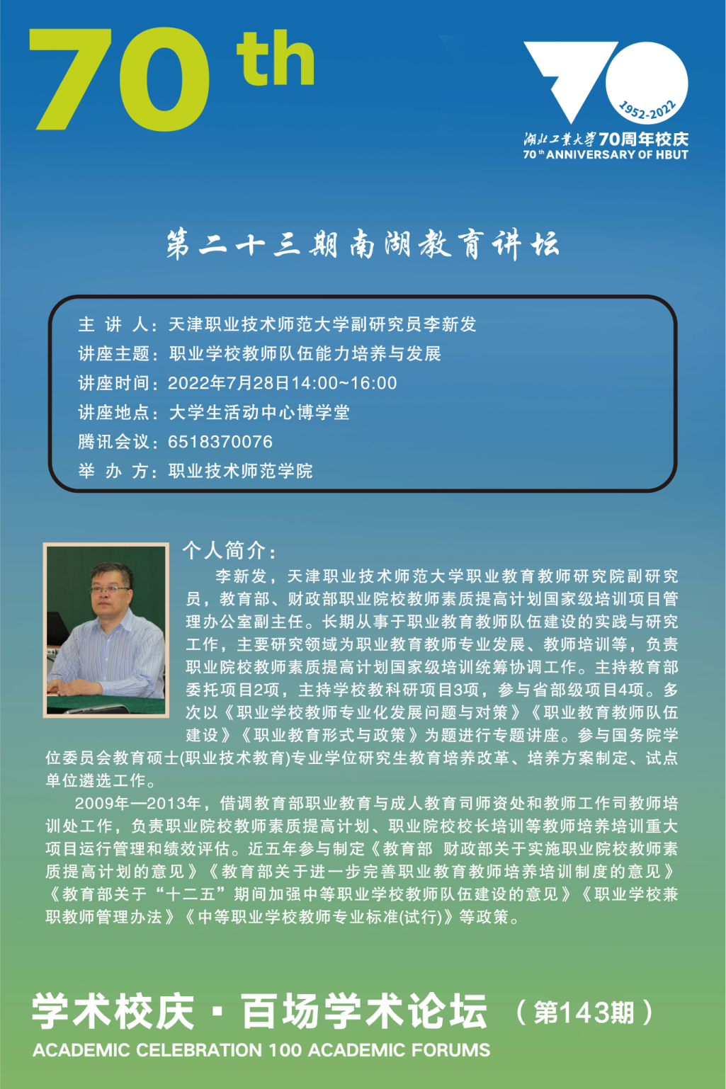 学术校庆·百场学术论坛--职业技术师范学院迎接70周年校庆系列讲座
