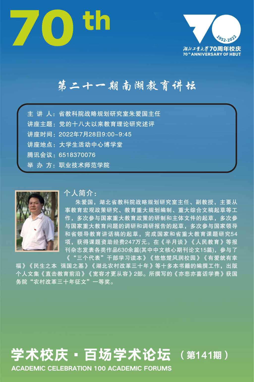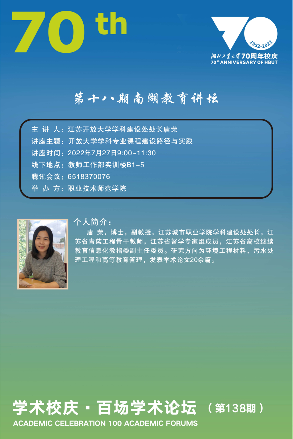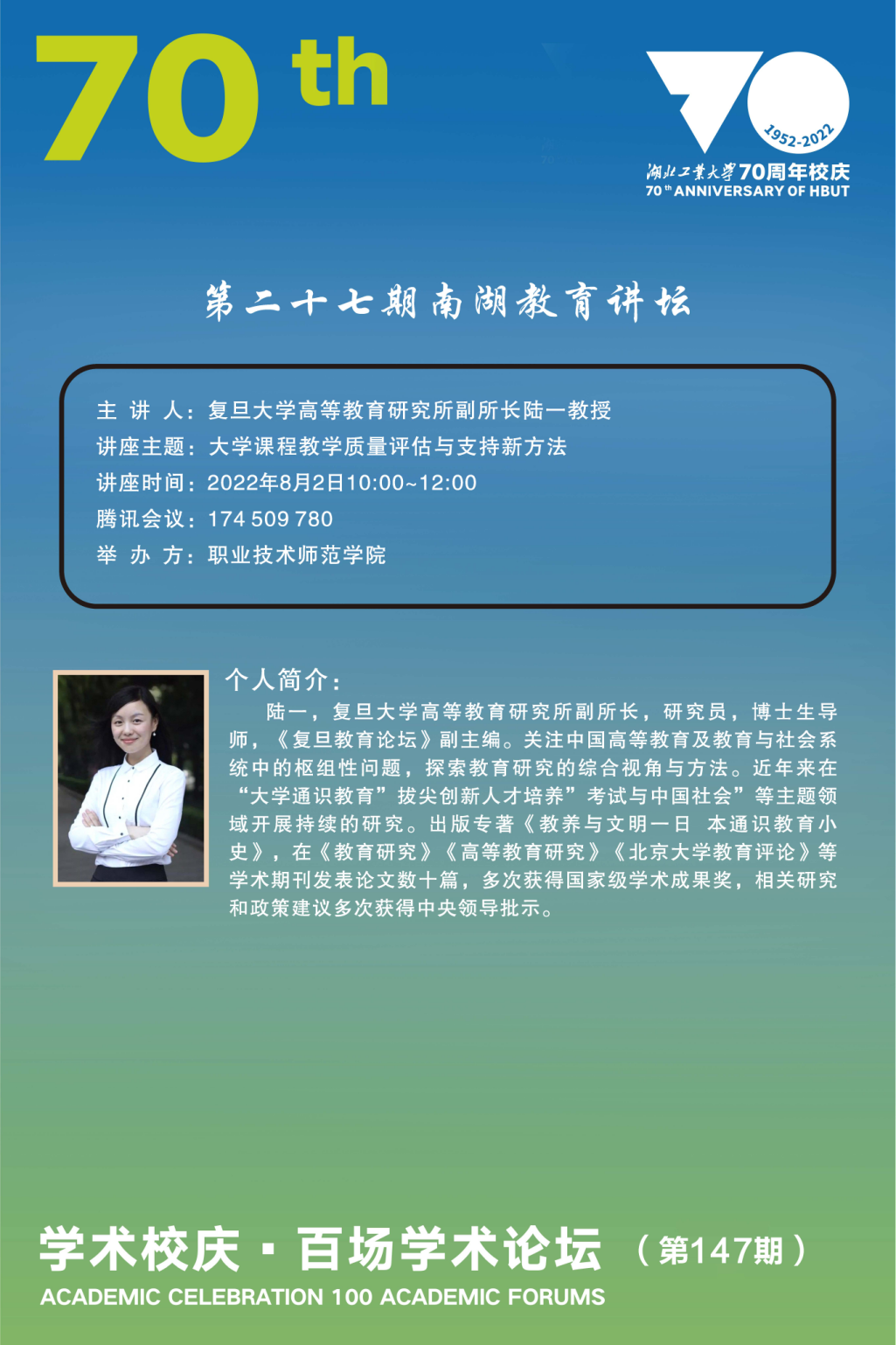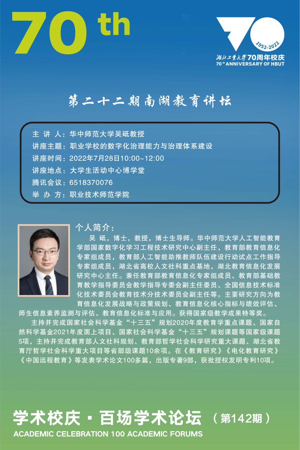 学术校庆·百场学术论坛--职业技术师范学院迎接70周年校庆系列讲座